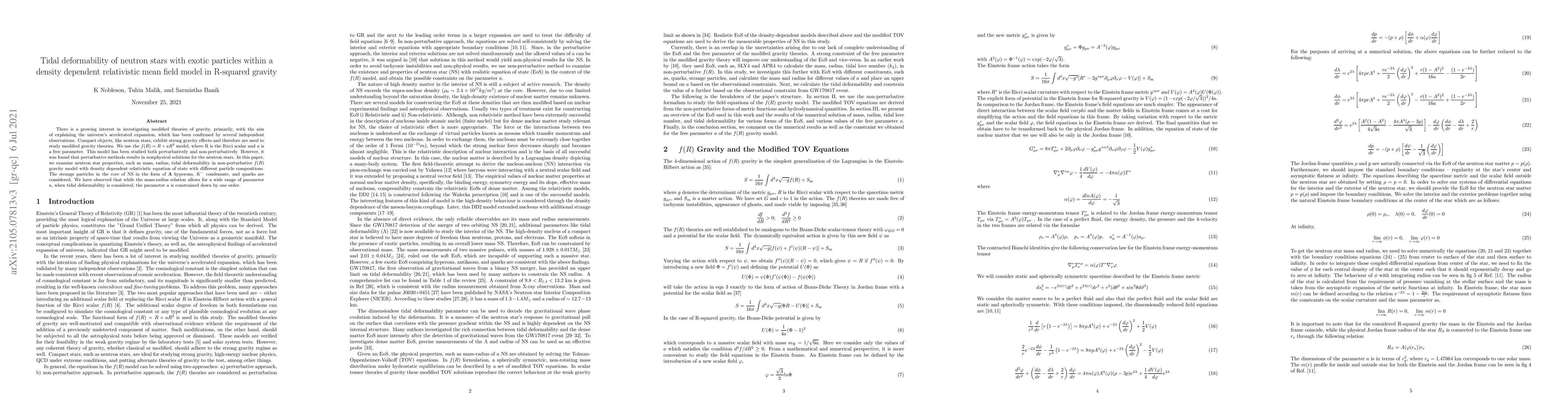 This paper investigates neutron star properties in a modified gravity model, finding that tidal deformability constrains the parameter $a$ down by one order of magnitude, regardless of exotic particle composition.
