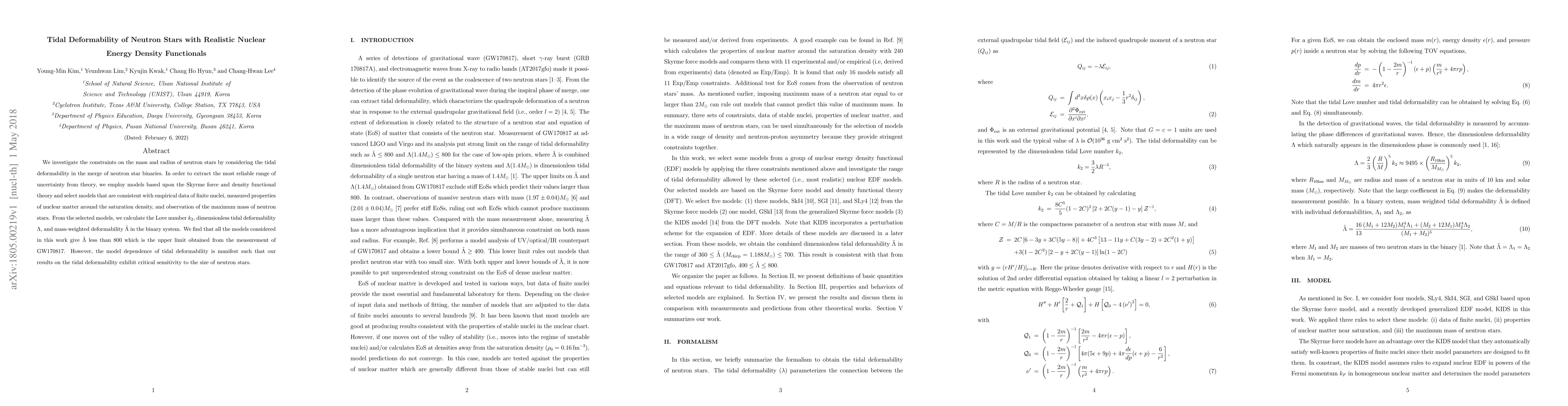 We investigate the constraints on the mass and radius of neutron stars by considering the tidal deformability in the merge of neutron star binaries. In order to extract the most reliable range of uncertainty from theory, we employ models based upon the Skyrme force and density functional theory and select models that are consistent with empirical data of finite nuclei, measured properties of nuclear matter around the saturation density, and observation of the maximum mass of neutron stars. From the selected models, we calculate the Love number $k_2$, dimensionless tidal deformability $\Lambda$, and mass-weighted deformability $\tilde{\Lambda}$ in the binary system. We find that all the models considered in this work give $\tilde{\Lambda}$ less than 800 which is the upper limit obtained from the measurement of GW170817. However, the model dependence of tidal deformability is manifest such that our results on the tidal deformability exhibit critical sensitivity to the size of neutron stars.