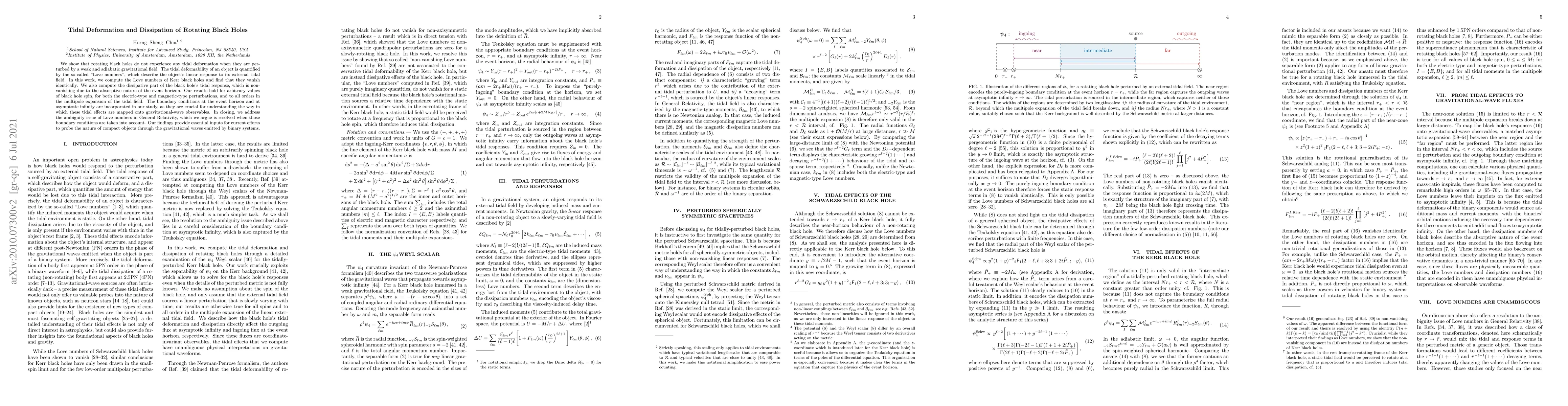 This paper demonstrates that rotating black holes, quantified by Kerr black holes, do not exhibit tidal deformation due to weak gravitational fields, as their Love numbers vanish. However, it finds a non-zero dissipative tidal response due to the event horizon's absorptive nature, relevant for gravitational wave studies.