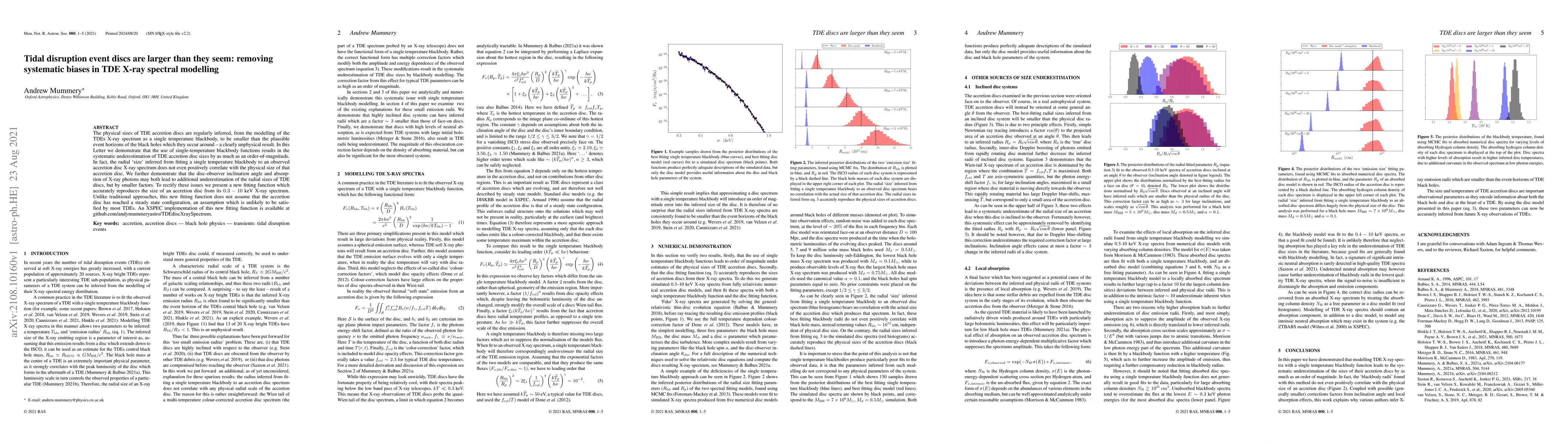 The authors presented a novel disc model that accurately reproduces the observed spectra of TDEs and provides a means for future X-ray observations