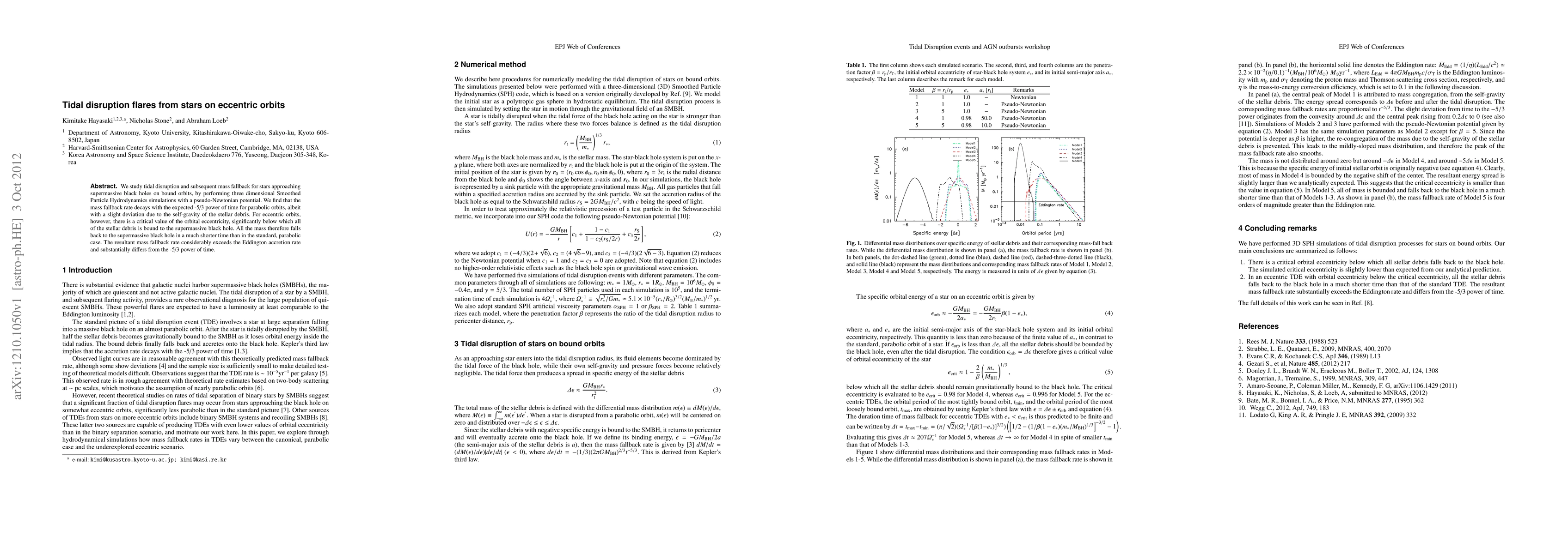 Research shows that stars on eccentric orbits have a higher mass fallback rate to supermassive black holes than those on parabolic orbits, with a critical eccentricity below which all debris falls back quickly.