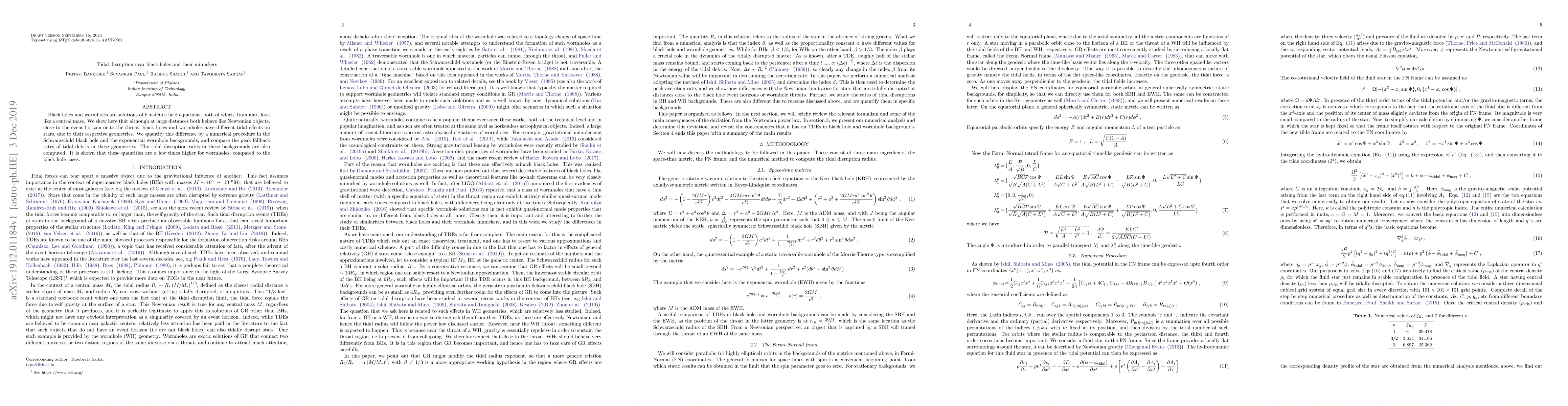 Black holes and wormholes are solutions of Einstein's field equations, both of which, from afar, look like a central mass. We show here that although at large distances both behave like Newtonian objects, close to the event horizon or to the throat, black holes and wormholes have different tidal effects on stars, due to their respective geometries. We quantify this difference by a numerical procedure in the Schwarzschild black hole and the exponential wormhole backgrounds, and compare the peak fallback rates of tidal debris in these geometries. The tidal disruption rates in these backgrounds are also computed. It is shown that these quantities are a few times higher for wormholes, compared to the black hole cases.