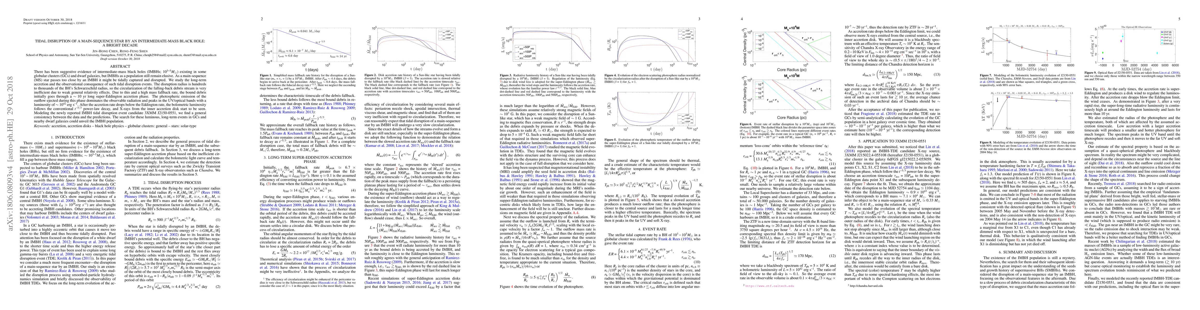 There has been suggestive evidence of intermediate-mass black holes (IMBHs; 10^{3-5} M_sun) existing in some globular clusters (GCs) and dwarf galaxies, but IMBHs as a population remain elusive. As a main-sequence star passes too close by an IMBH it might be tidally captured and disrupted. We study the long-term accretion and observational consequence of such tidal disruption events. The disruption radius is hundreds to thousands of the BH's Schwarzschild radius, so the circularization of the falling-back debris stream is very inefficient due to weak general relativity effects. Due to this and a high mass fallback rate, the bound debris initially goes through a ~10 yr long super-Eddington accretion phase. The photospheric emission of the outflow ejected during this phase dominates the observable radiation and peaks in the UV/optical bands with a luminosity of 10^42 erg/s. After the accretion rate drops below the Eddington rate, the bolometric luminosity follows the conventional t^{-5/3} power-law decay, and X-rays from the inner accretion disk start to be seen. Modeling the newly reported IMBH tidal disruption event candidate 3XMM J2150-0551, we find a general consistency between the data and predictions. The search for these luminous, long-term events in GCs and nearby dwarf galaxies could unveil the IMBH population.