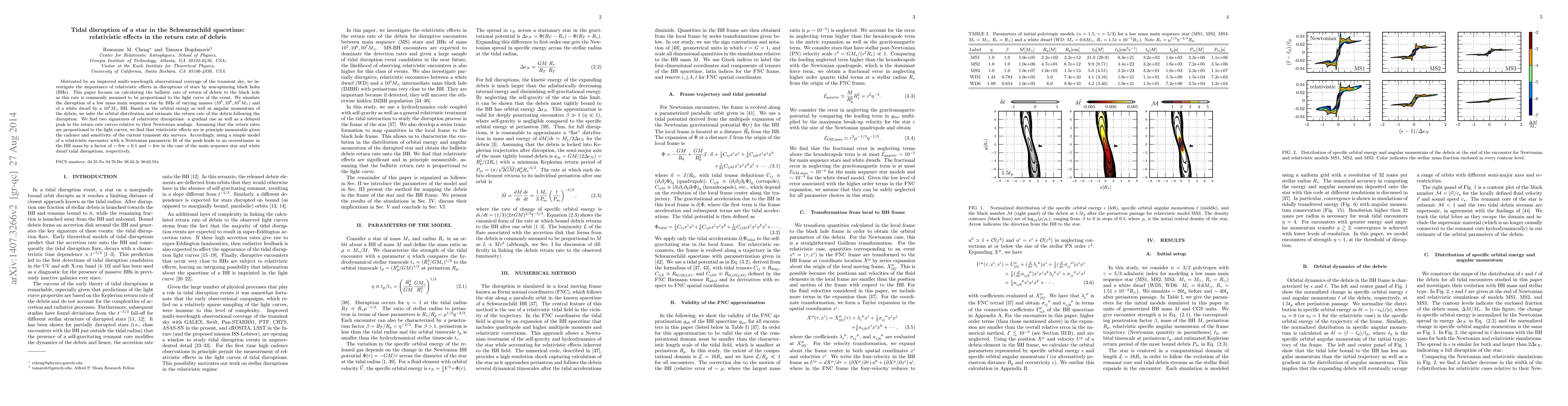 This paper investigates relativistic effects on the return rate of debris from tidal disruptions of stars by non-spinning black holes, finding that relativistic disruptions show a gradual rise and delayed peak in return rate curves. It concludes that these effects could be measurable with current transient sky surveys, though neglecting relativity can lead to significant mass overestimates.