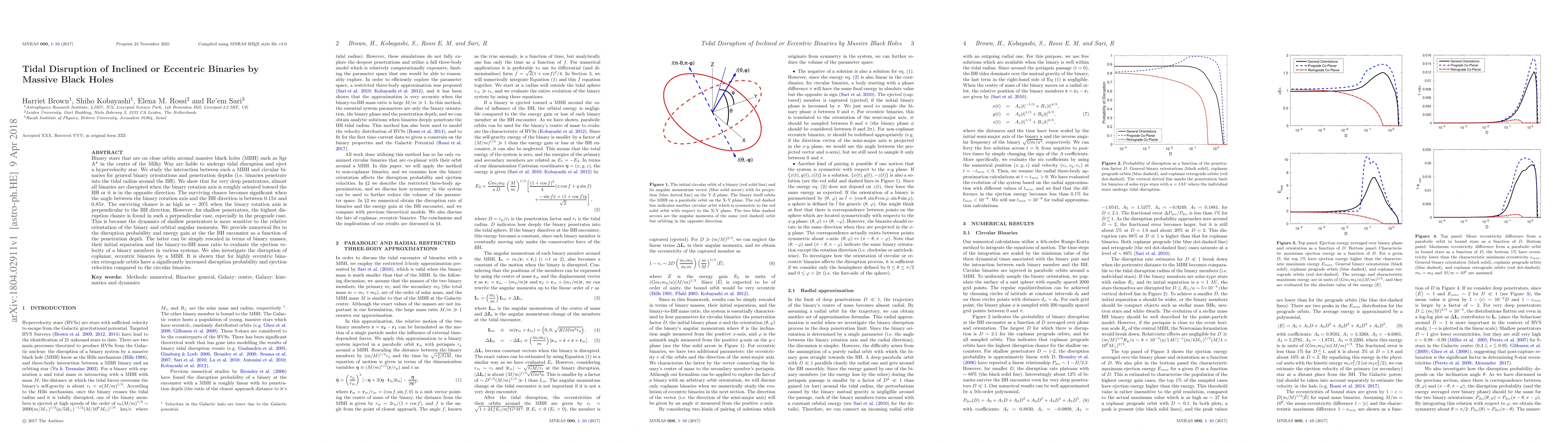 Binary stars orbiting massive black holes are at risk of tidal disruption, with the likelihood depending on their orientation and penetration depth into the black hole's gravitational field.