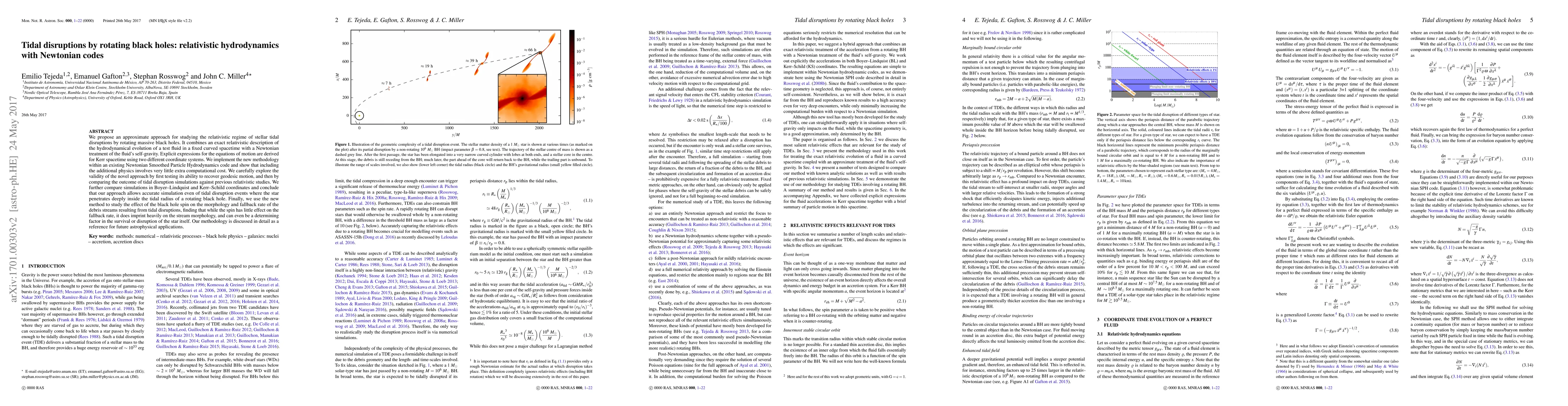 This paper proposes an innovative approach to simulate tidal disruptions by rotating black holes using relativistic hydrodynamics within Newtonian codes, demonstrating minimal computational overhead and accurate results comparable to previous relativistic studies. The method reveals that black hole spin significantly affects the morphology of debris streams but has a minor impact on the fallback rate.