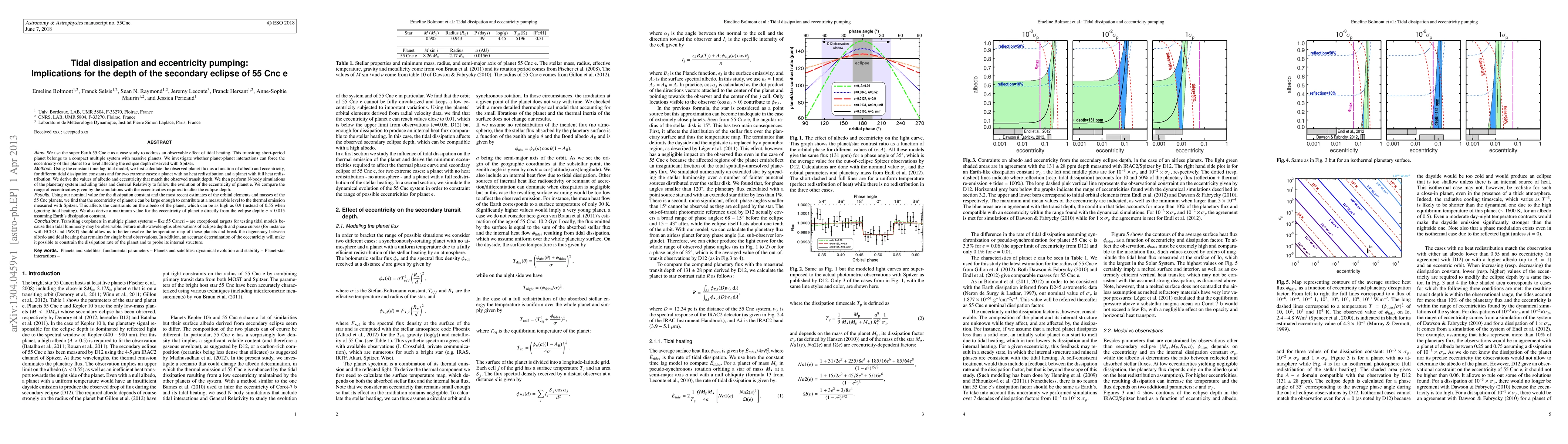 This study examines the tidal dissipation and eccentricity pumping effects on the super Earth 55 Cnc e, finding that significant eccentricity can alter the observed eclipse depth, potentially raising the planet's albedo to as high as 0.9. Future multi-wavelength observations are suggested to better resolve the planet's temperature and internal structure.