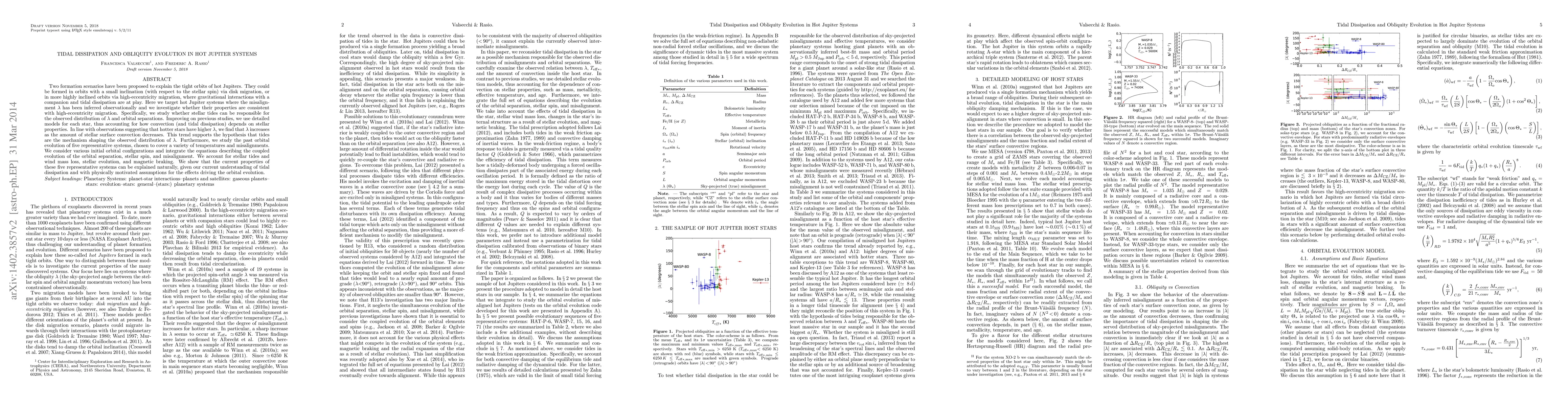 This research investigates the role of tidal dissipation in shaping the orbits of hot Jupiters, finding that misalignment ($\lambda$) increases with decreasing stellar surface convection, supporting the hypothesis that tides are responsible for the observed distribution. The study also models the orbital evolution of five representative systems, showing that current properties can be explained by tidal dissipation and other physical processes.