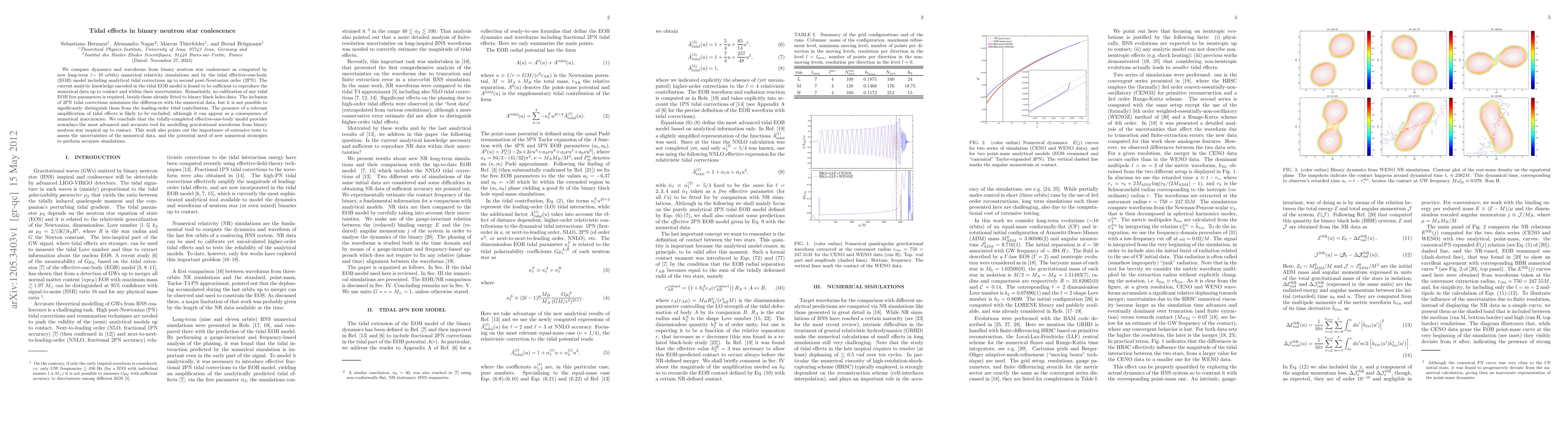 This paper compares numerical relativity simulations and the tidal effective-one-body model for binary neutron star coalescence, finding that the tidal EOB model accurately reproduces numerical data up to contact without additional parameter calibration. The study emphasizes the importance of testing numerical uncertainties and suggests the need for improved numerical strategies.