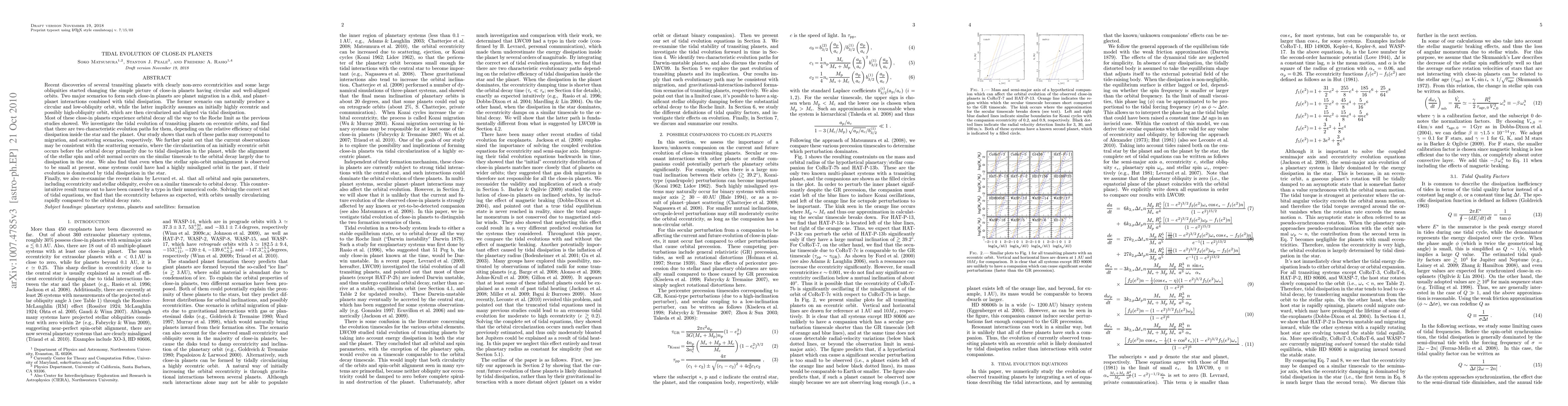 This paper explores the tidal evolution of close-in planets with non-zero eccentricities, suggesting that tidal dissipation dominates their current and future orbital evolution. It identifies two distinct evolution paths based on the relative efficiency of tidal dissipation, indicating that some planets may have formed from initially eccentric orbits that were tidally circularized.