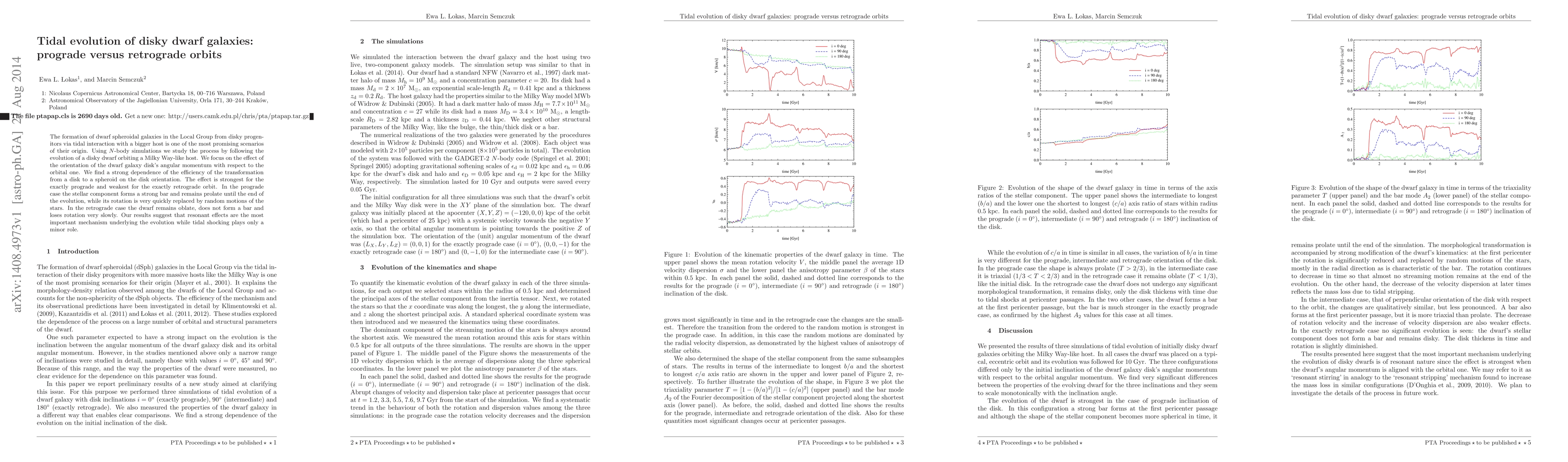 The formation of dwarf spheroidal galaxies in the Local Group from disky progenitors via tidal interaction with a bigger host is one of the most promising scenarios of their origin. Using N-body simulations we study the process by following the evolution of a disky dwarf orbiting a Milky Way-like host. We focus on the effect of the orientation of the dwarf galaxy disk's angular momentum with respect to the orbital one. We find a strong dependence of the efficiency of the transformation from a disk to a spheroid on the disk orientation. The effect is strongest for the exactly prograde and weakest for the exactly retrograde orbit. In the prograde case the stellar component forms a strong bar and remains prolate until the end of the evolution, while its rotation is very quickly replaced by random motions of the stars. In the retrograde case the dwarf remains oblate, does not form a bar and loses rotation very slowly. Our results suggest that resonant effects are the most important mechanism underlying the evolution while tidal shocking plays only a minor role.