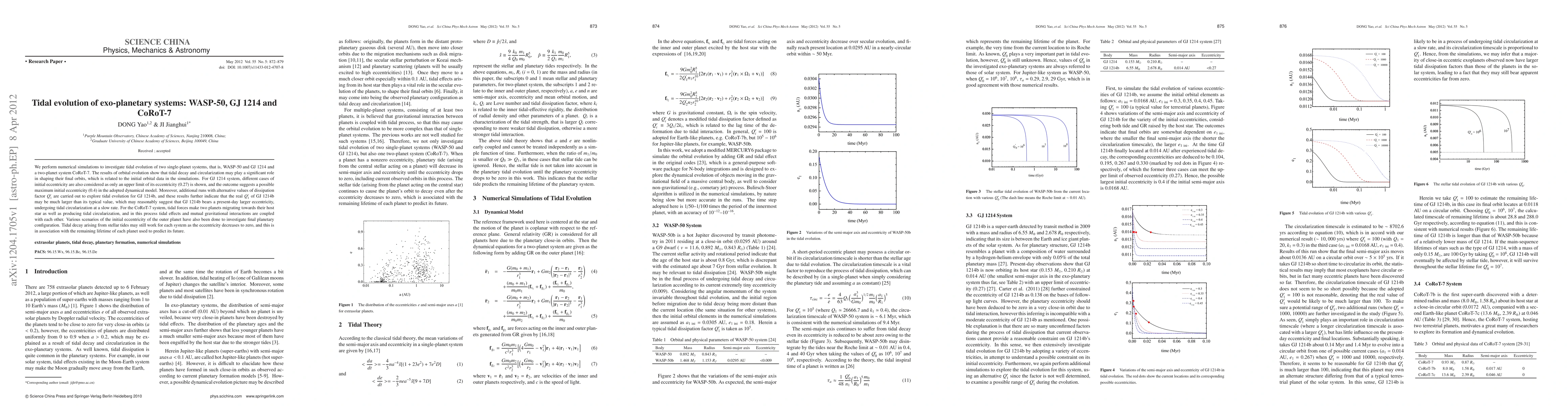 We perform numerical simulations to investigate tidal evolution of two single-planet systems, that is, WASP-50 and GJ 1214 and a two-planet system CoRoT-7. The results of orbital evolution show that tidal decay and circularization may play a significant role in shaping their final orbits, which is related to the initial orbital data in the simulations. For GJ 1214 system, different cases of initial eccentricity are also considered as only an upper limit of its eccentricity (0.27) is shown, and the outcome suggests a possible maximum initial eccentricity (0.4) in the adopted dynamical model. Moreover, additional runs with alternative values of dissipation factor $Q^\prime_1$ are carried out to explore tidal evolution for GJ 1214b, and these results further indicate that the real $Q^\prime_1$ of GJ 1214b may be much larger than its typical value, which may reasonably suggest that GJ 1214b bears a present-day larger eccentricity, undergoing tidal circularization at a slow rate. For the CoRoT-7 system, tidal forces make two planets migrating towards their host star as well as producing tidal circularization, and in this process tidal effects and mutual gravitational interactions are coupled with each other. Various scenarios of the initial eccentricity of the outer planet have also been done to investigate final planetary configuration. Tidal decay arising from stellar tides may still work for each system as the eccentricity decreases to zero, and this is in association with the remaining lifetime of each planet used to predict its future.