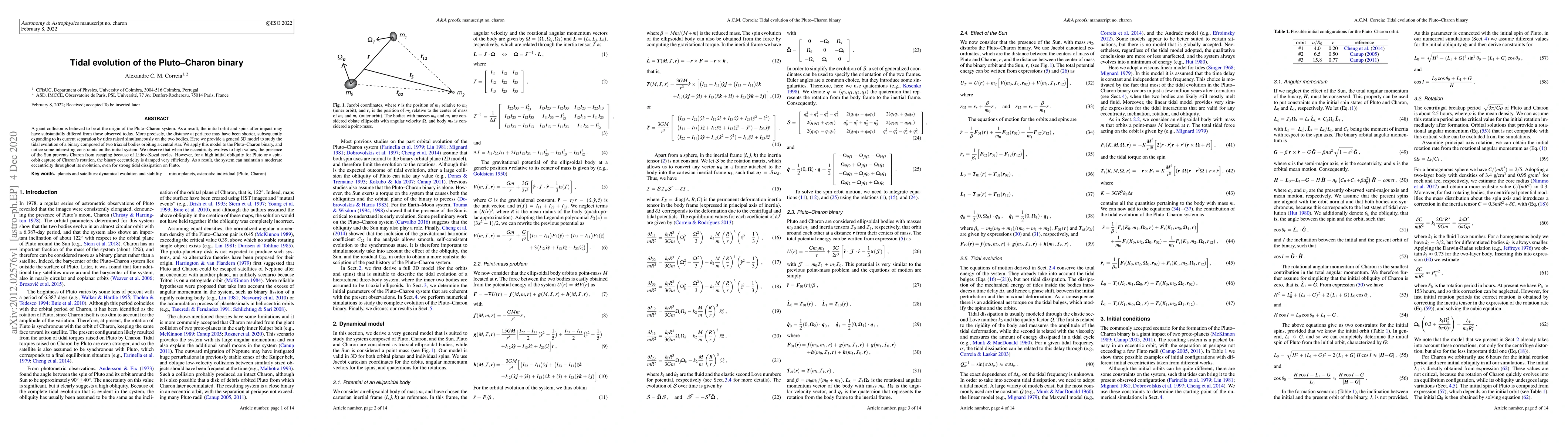 A giant collision is believed to be at the origin of the Pluto-Charon system. As a result, the initial orbit and spins after impact may have substantially differed from those observed today. More precisely, the distance at periapse may have been shorter, subsequently expanding to its current separation by tides raised simultaneously on the two bodies. Here we provide a general 3D model to study the tidal evolution of a binary composed of two triaxial bodies orbiting a central star. We apply this model to the Pluto-Charon binary, and notice some interesting constraints on the initial system. We observe that when the eccentricity evolves to high values, the presence of the Sun prevents Charon from escaping because of Lidov-Kozai cycles. However, for a high initial obliquity for Pluto or a spin-orbit capture of Charon's rotation, the binary eccentricity is damped very efficiently. As a result, the system can maintain a moderate eccentricity throughout its evolution, even for strong tidal dissipation on Pluto.