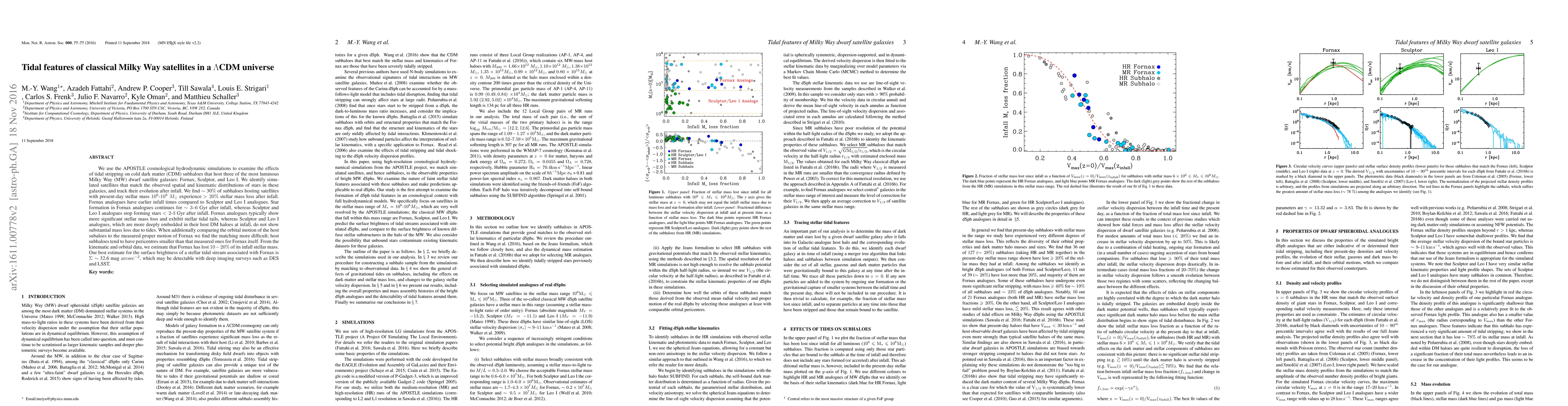 This paper investigates the tidal effects on three Milky Way satellite galaxies using cosmological simulations, finding that $\sim$30% of subhaloes hosting satellites with stellar masses between $10^6$-$10^8$ $M_{\odot}$ lose over 20% of their stellar mass post-infall. Fornax analogues show more significant stellar mass loss and tidal tails compared to Sculptor and Leo I analogues.