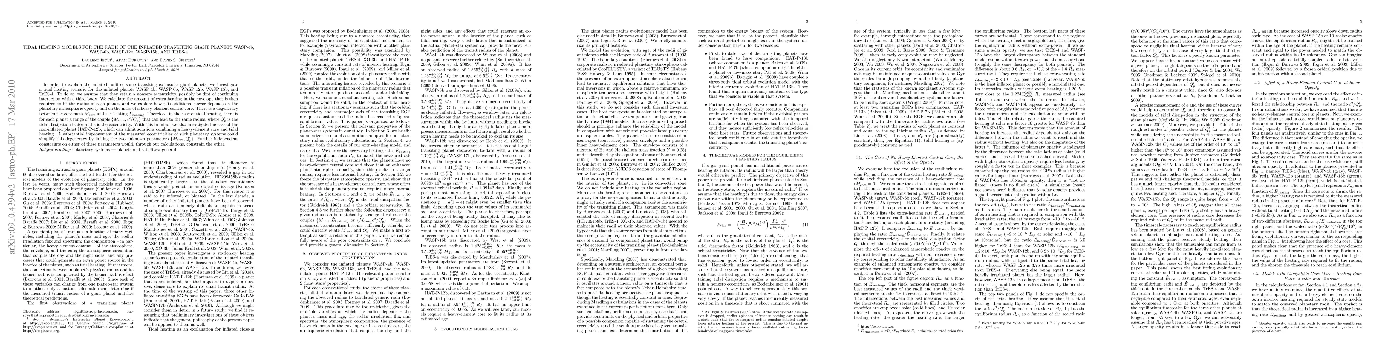 This paper explores tidal heating as a mechanism to explain the inflated radii of transiting extrasolar giant planets, specifically WASP-4b, WASP-6b, WASP-12b, WASP-15b, and TrES-4. The study finds that a range of core mass and heating scenarios can produce the observed radii, highlighting the need for more precise eccentricity measurements to resolve this degeneracy.