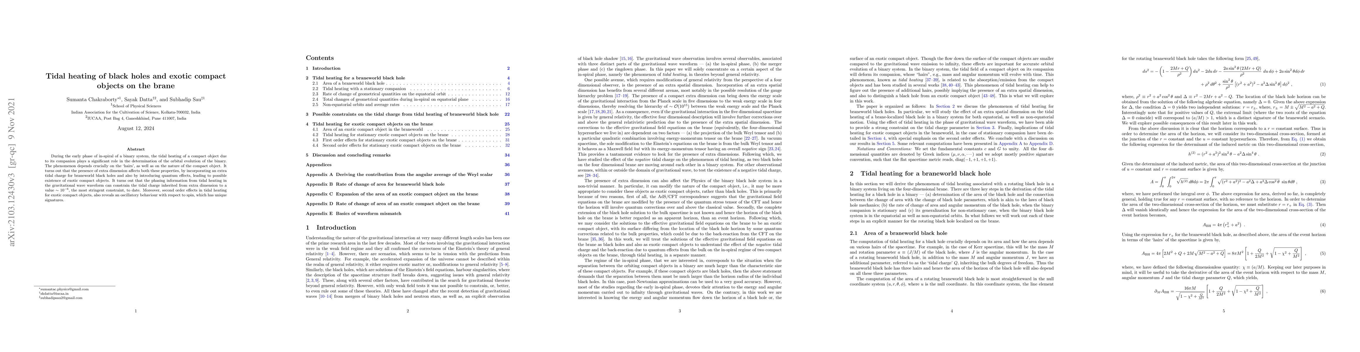 Research finds that tidal heating in black holes and exotic compact objects on a brane can provide new constraints and signatures, especially with the addition of extra dimensions, allowing for stronger limits on their properties.