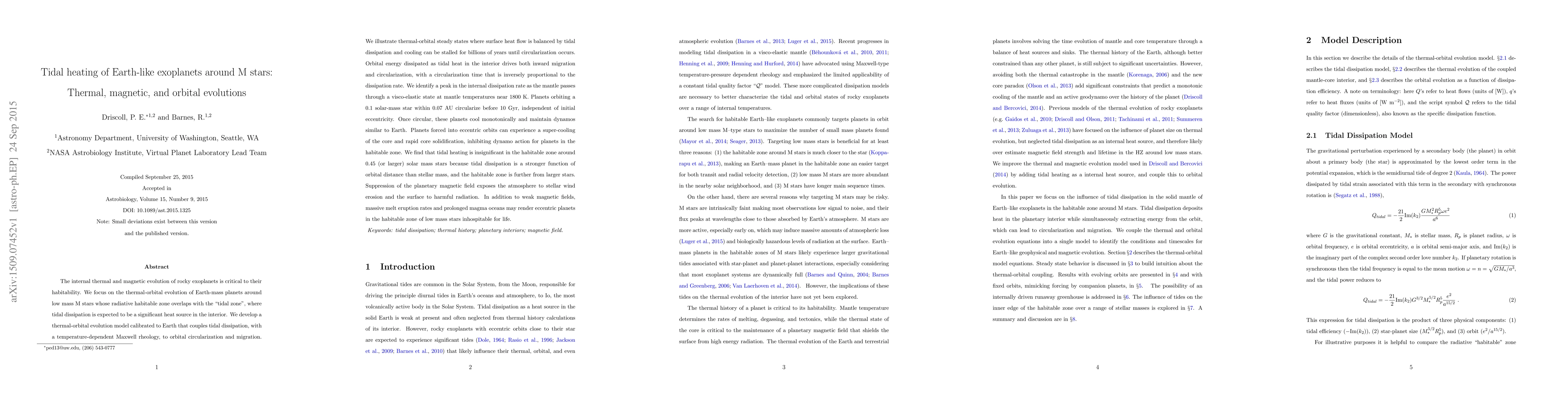 This paper investigates the thermal and magnetic evolution of Earth-like exoplanets around M stars, focusing on tidal heating effects. It finds that tidal dissipation can lead to significant internal heating, driving orbital circularization and potentially sustaining magnetic dynamos, but eccentric orbits can cause core solidification and magnetic field suppression, making such planets less habitable.