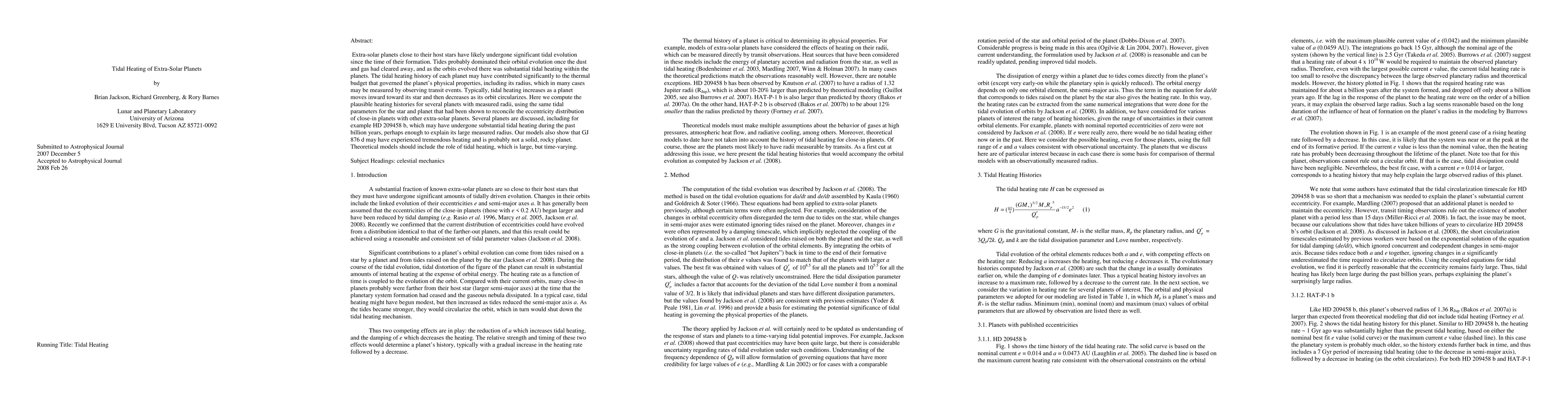 This paper investigates the impact of tidal heating on the evolution and physical properties of extra-solar planets, particularly those close to their host stars. It models the heating histories of several planets, suggesting that tidal heating significantly influenced their radii, with examples like HD 209458 b and GJ 876 d experiencing substantial heating that may explain their current states.
