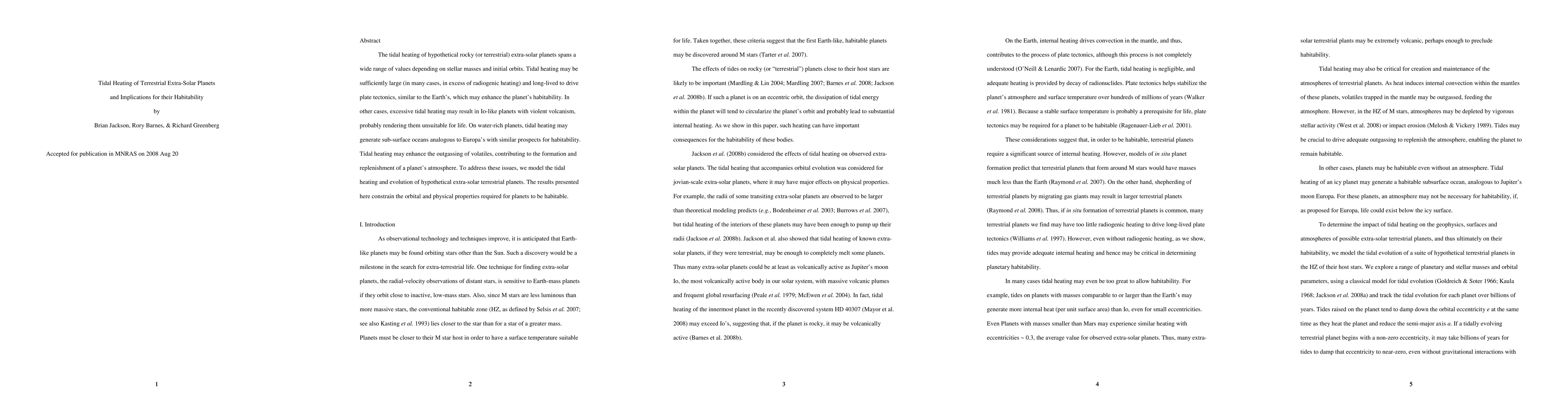 This paper models the tidal heating of terrestrial extra-solar planets, finding that it can either drive plate tectonics and enhance habitability, or lead to extreme volcanism and uninhabitability. The study identifies the orbital and physical conditions necessary for a planet to support life.