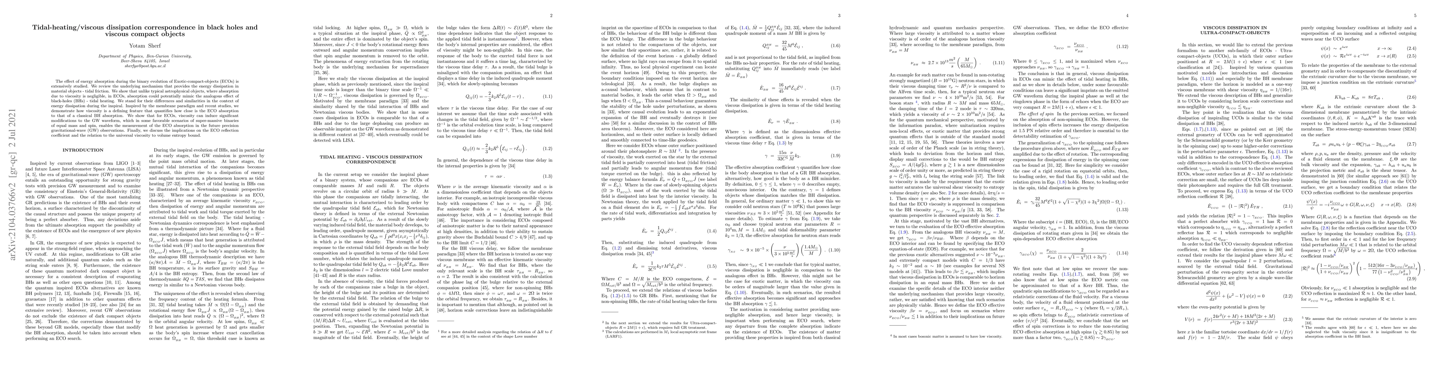The effect of energy absorption during the binary evolution of Exotic-compact-objects (ECOs) is extensively studied. We review the underlying mechanism that provides the energy dissipation in material objects - tidal friction. We show that unlike typical astrophysical objects, where absorption due to viscosity is negligible, in ECOs, absorption could potentially mimic the analogous effect of black-holes (BHs) - tidal heating. We stand for their differences and similarities in the context of energy dissipation during the inspiral. Inspired by the membrane paradigm and recent studies, we demonstrate how viscosity is a defining feature that quantifies how close is the ECO absorption to that of a classical BH absorption. We show that for ECOs, viscosity can induce significant modifications to the GW waveform, which in some favorable scenarios of super-massive binaries of equal mass and spin, enables the measurement of the ECO absorption in the future precision gravitational-wave (GW) observations. Finally, we discuss the implications on the ECO reflection coefficient and the relation to the universal viscosity to volume entropy bound.