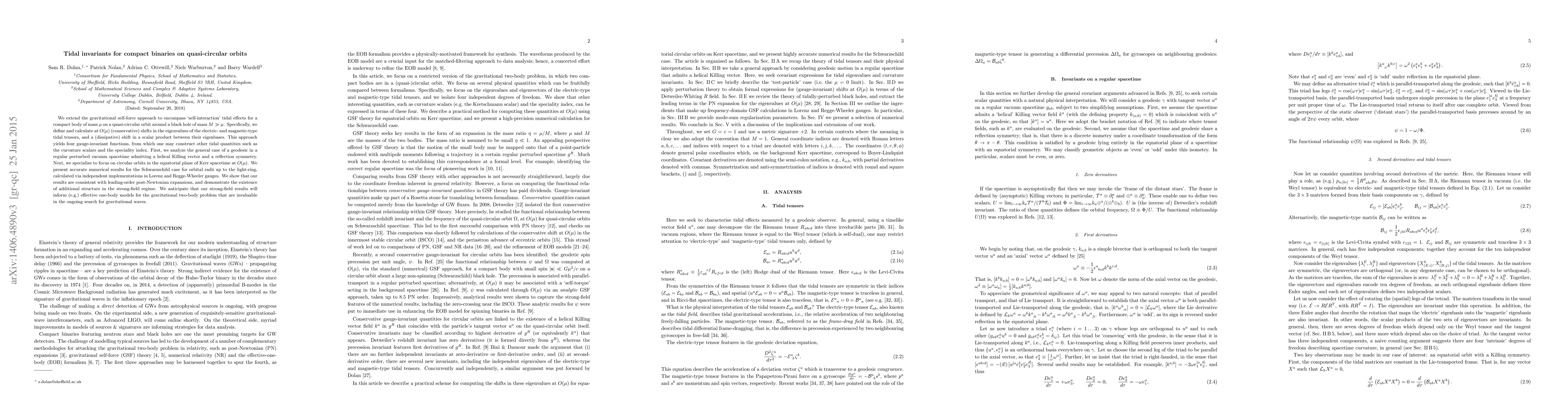 We extend the gravitational self-force approach to encompass `self-interaction' tidal effects for a compact body of mass $\mu$ on a quasi-circular orbit around a black hole of mass $M \gg \mu$. Specifically, we define and calculate at $O(\mu)$ (conservative) shifts in the eigenvalues of the electric- and magnetic-type tidal tensors, and a (dissipative) shift in a scalar product between their eigenbases. This approach yields four gauge-invariant functions, from which one may construct other tidal quantities such as the curvature scalars and the speciality index. First, we analyze the general case of a geodesic in a regular perturbed vacuum spacetime admitting a helical Killing vector and a reflection symmetry. Next, we specialize to focus on circular orbits in the equatorial plane of Kerr spacetime at $O(\mu)$. We present accurate numerical results for the Schwarzschild case for orbital radii up to the light-ring, calculated via independent implementations in Lorenz and Regge-Wheeler gauges. We show that our results are consistent with leading-order post-Newtonian expansions, and demonstrate the existence of additional structure in the strong-field regime. We anticipate that our strong-field results will inform (e.g.) effective one-body models for the gravitational two-body problem that are invaluable in the ongoing search for gravitational waves.