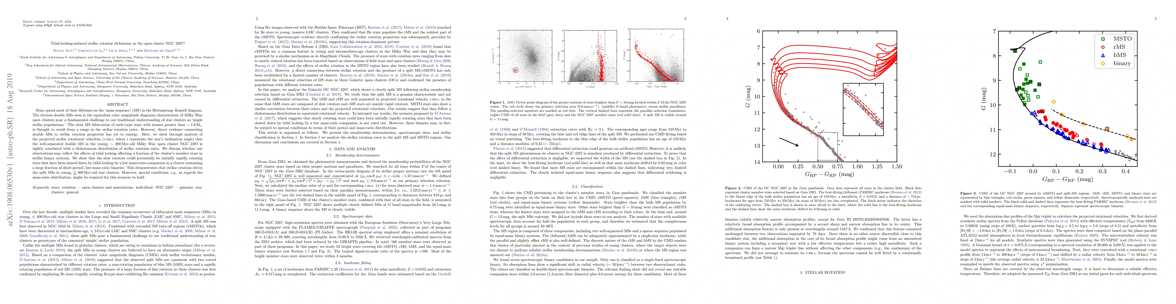 Stars spend most of their lifetimes on the `main sequence' (MS) in the Hertzsprung--Russell diagram. The obvious double MSs seen in the equivalent color--magnitude diagrams characteristic of Milky Way open clusters pose a fundamental challenge to our traditional understanding of star clusters as `single stellar populations.' The clear MS bifurcation of early-type stars with masses greater than $\sim1.6 M_\odot$ is thought to result from a range in the stellar rotation rates. However, direct evidence connecting double MSs to stellar rotation properties has yet to emerge. Here, we show through analysis of the projected stellar rotational velocities ($v\sin i$, where $i$ represents the star's inclination angle) that the well-separated double MS in the young, $\sim200Myr$-old Milky Way open cluster NGC 2287 is tightly correlated with a dichotomous distribution of stellar rotation rates. We discuss whether our observations may reflect the effects of tidal locking affecting a fraction of the cluster's member stars in stellar binary systems. We show that the slow rotators could potentially be initially rapidly rotating stars that have been slowed down by tidal locking by a low mass-ratio companion in a cluster containing a large fraction of short-period, low-mass-ratio binaries. This demonstrates that stellar rotation drives the split MSs in young, $\lessapprox 300$Myr-old star clusters. However, special conditions, e.g., as regards the mass-ratio distribution, might be required for this scenario to hold.