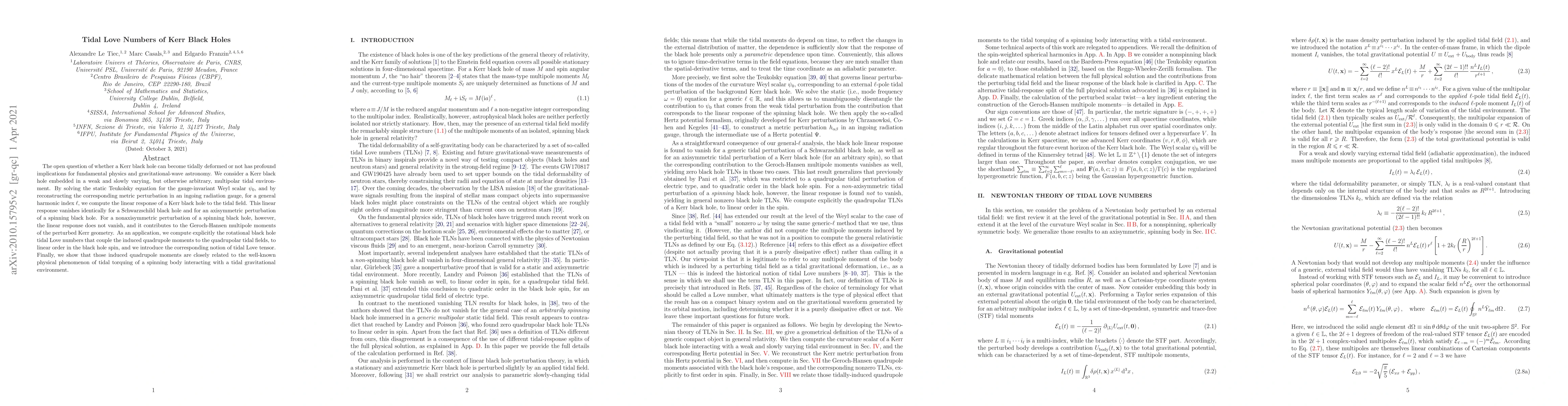 This research computes the tidal Love numbers for Kerr black holes, demonstrating that they can indeed be tidally deformed under nonaxisymmetric perturbations. The study finds that these deformations contribute to the black hole's multipole moments and relates the induced quadrupole moments to tidal torquing effects.