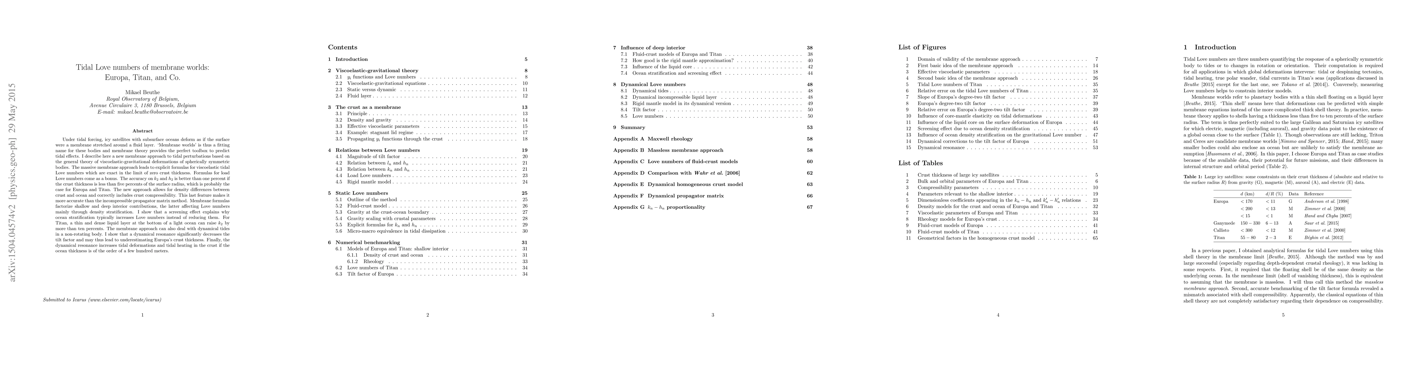 Under tidal forcing, icy satellites with subsurface oceans deform as if the surface were a membrane stretched around a fluid layer. `Membrane worlds' is thus a fitting name for these bodies and membrane theory provides the perfect toolbox to predict tidal effects. I describe here a new membrane approach to tidal perturbations based on the general theory of viscoelastic-gravitational deformations of spherically symmetric bodies. The massive membrane approach leads to explicit formulas for viscoelastic tidal Love numbers which are exact in the limit of zero crust thickness. Formulas for load Love numbers come as a bonus. The accuracy on $k_2$ and $h_2$ is better than one percent if the crust thickness is less than five percents of the surface radius, which is probably the case for Europa and Titan. The new approach allows for density differences between crust and ocean and correctly includes crust compressibility. This last feature makes it more accurate than the incompressible propagator matrix method. Membrane formulas factorize shallow and deep interior contributions, the latter affecting Love numbers mainly through density stratification. I show that a screening effect explains why ocean stratification typically increases Love numbers instead of reducing them. For Titan, a thin and dense liquid layer at the bottom of a light ocean can raise $k_2$ by more than ten percents. The membrane approach can also deal with dynamical tides in a non-rotating body. I show that a dynamical resonance significantly decreases the tilt factor and may thus lead to underestimating Europa's crust thickness. Finally, the dynamical resonance increases tidal deformations and tidal heating in the crust if the ocean thickness is of the order of a few hundred meters.