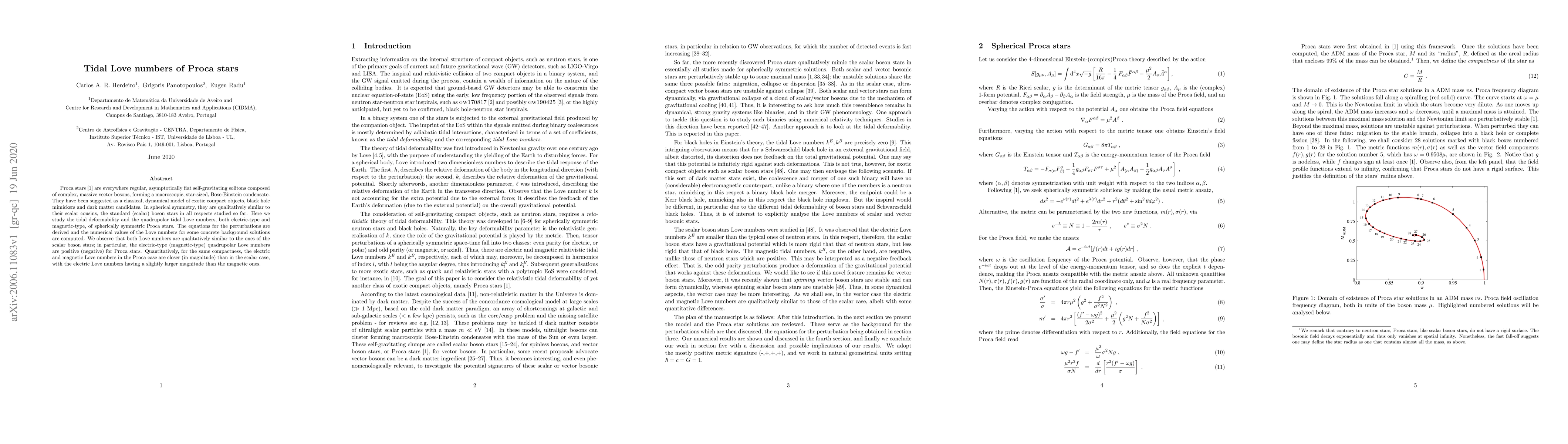 The paper presents a detailed derivation of the perturbation equations for Proca stars and provides numerical computations of their tidal Love numbers, extending previous work on scalar boson stars to complex Proca fields.