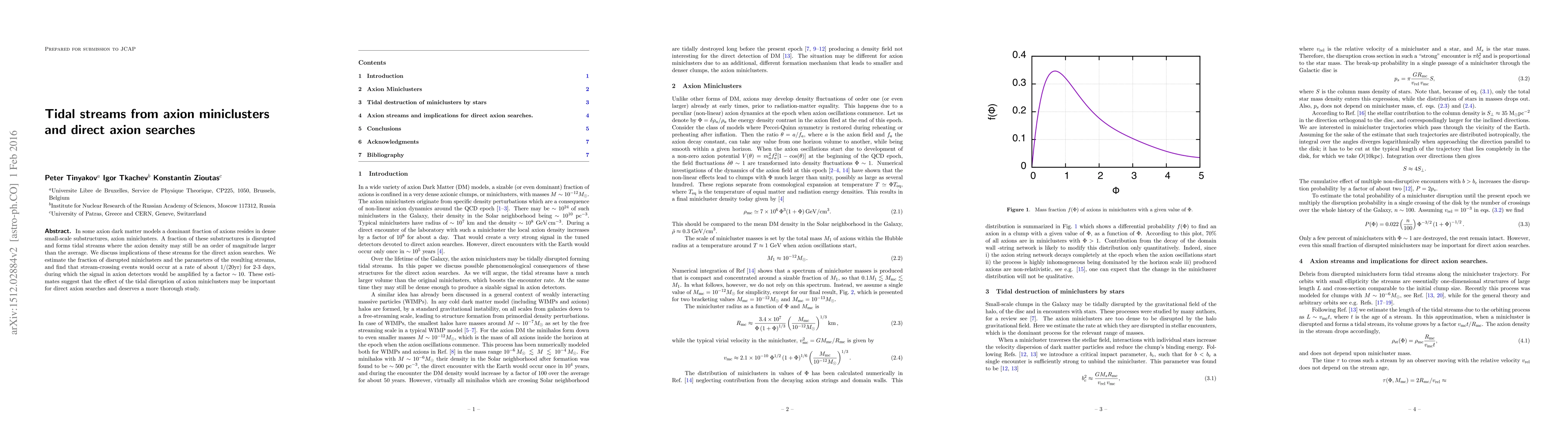 This research investigates the potential tidal streams from disrupted axion miniclusters in dark matter models, predicting an amplified axion signal in detectors during stream-crossing events, occurring at a rate of approximately $1/(20 {\rm yr})$ for 2-3 days, which suggests a significant effect on direct axion search strategies.