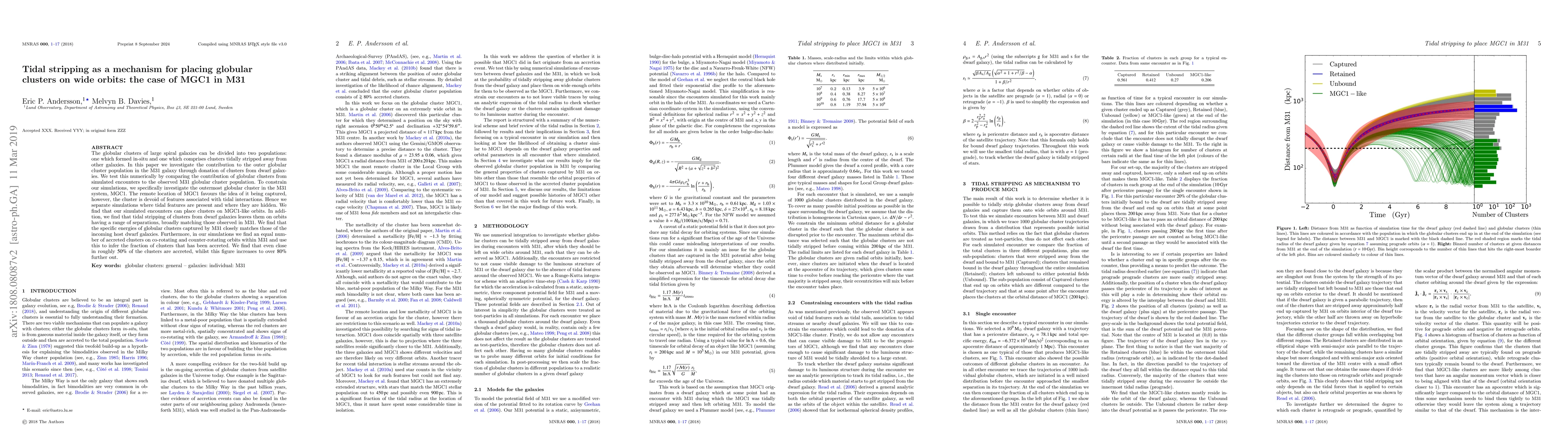 This paper investigates how tidal stripping from dwarf galaxies contributes to the outer globular cluster population in M31, focusing on the cluster MGC1. The study finds that simulated encounters can place clusters on orbits similar to MGC1, suggesting that tidal stripping can account for the wide orbits of globular clusters, with over 80% of clusters further out likely being accreted.