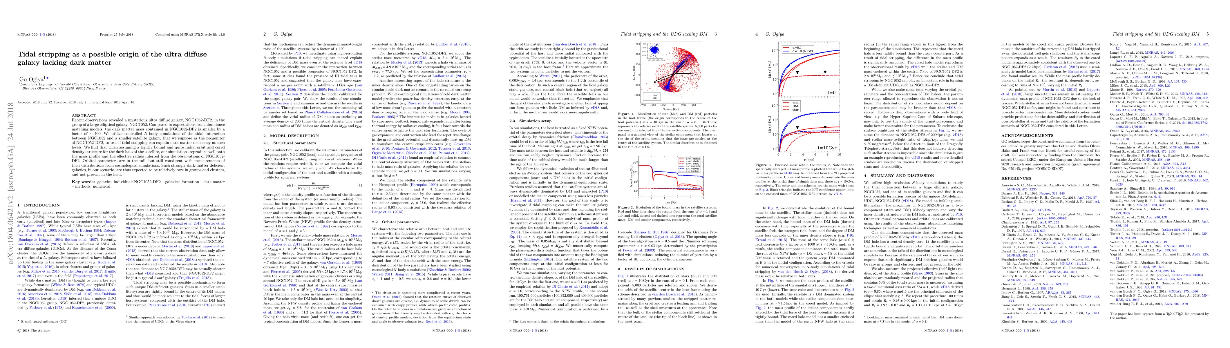 This paper investigates whether tidal stripping from NGC1052 can explain the dark matter deficiency in the ultra diffuse galaxy NGC1052-DF2. Simulations show that a tightly bound satellite galaxy on a radial orbit can lose most of its dark matter, matching the observed characteristics of NGC1052-DF2.