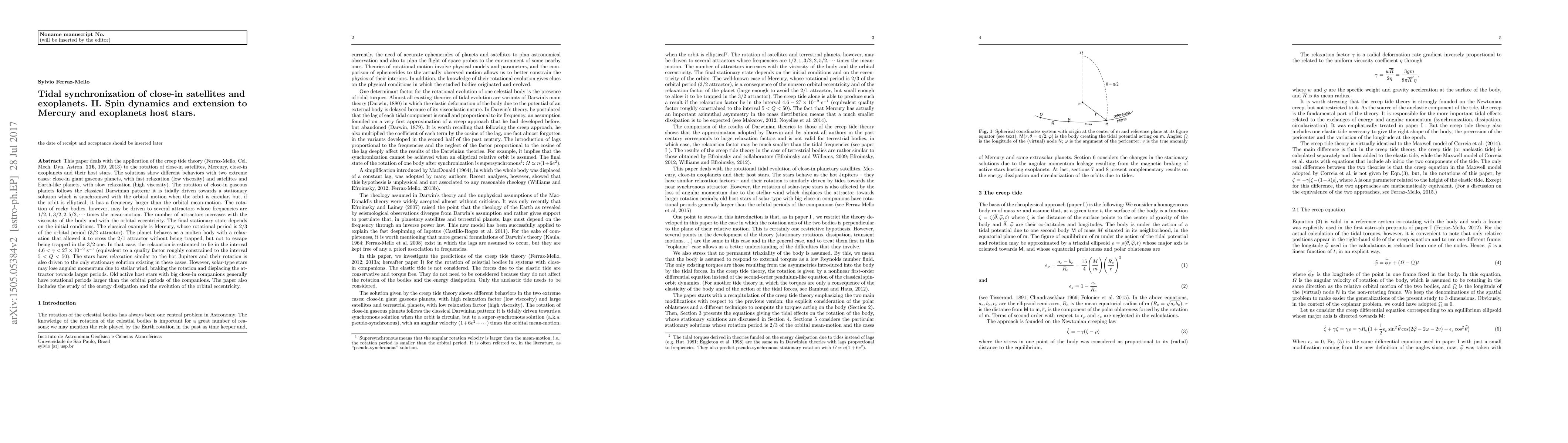 CeMDA 116, 109, 2013) to the rotation of close-in satellites, Mercury, close-in
