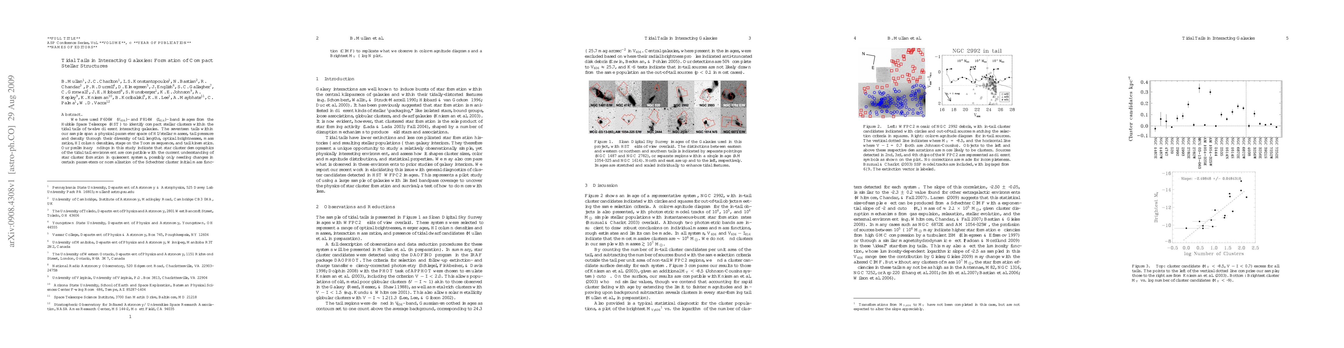 This study identifies compact stellar clusters in tidal tails of twelve interacting galaxies using HST images, finding that their demographics align with star cluster formation in quiescent systems, potentially requiring adjustments to the Schechter cluster initial mass function.