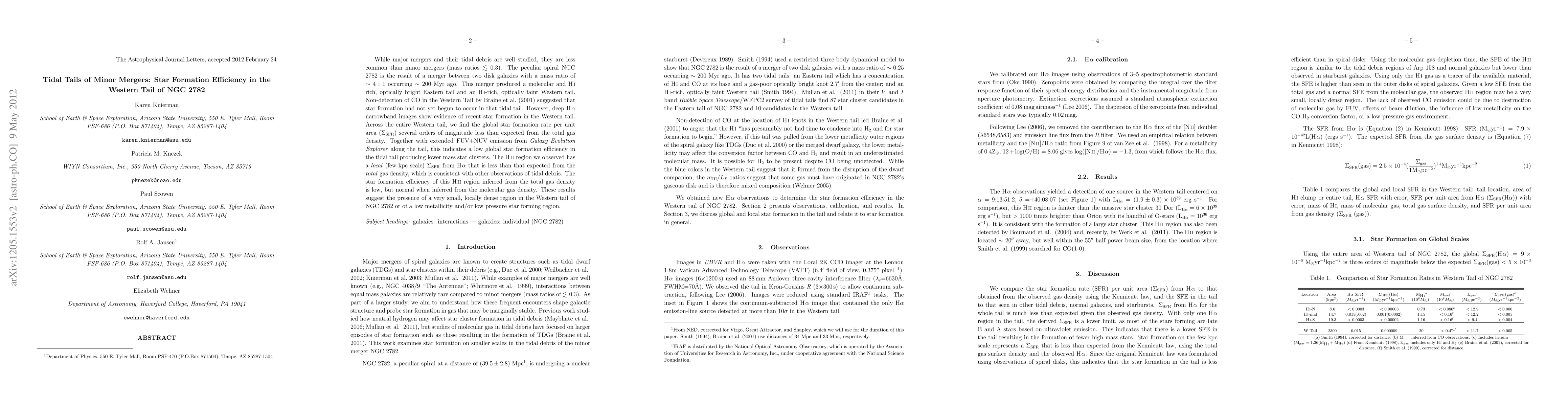 While major mergers and their tidal debris are well studied, they are less common than minor mergers (mass ratios < 0.3). The peculiar spiral NGC 2782 is the result of a merger between two disk galaxies with a mass ratio of ~4:1 occurring ~200 Myr ago. This merger produced a molecular and H I-rich, optically bright eastern tail and an H I-rich, optically faint western tail. Non-detection of CO in the western tail by Braine et al. suggested that star formation had not yet begun to occur in that tidal tail. However, deep H{\alpha} narrowband images show evidence of recent star formation in the western tail. Across the entire western tail, we find the global star formation rate per unit area ({\Sigma}SFR) to be several orders of magnitude less than expected from the total gas density. Together with extended FUV+NUV emission from Galaxy Evolution Explorer along the tail, this indicates a low global star formation efficiency in the tidal tail producing lower mass star clusters. The H II region that we observed has a local (few-kiloparsec scale) {\Sigma}SFR from H{\alpha} that is less than that expected from the total gas density, which is consistent with other observations of tidal debris. The star formation efficiency of this H II region inferred from the total gas density is low, but normal when inferred from the molecular gas density. These results suggest the presence of a very small, locally dense region in the western tail of NGC 2782 or of a low-metallicity and/or low-pressure star-forming region.
