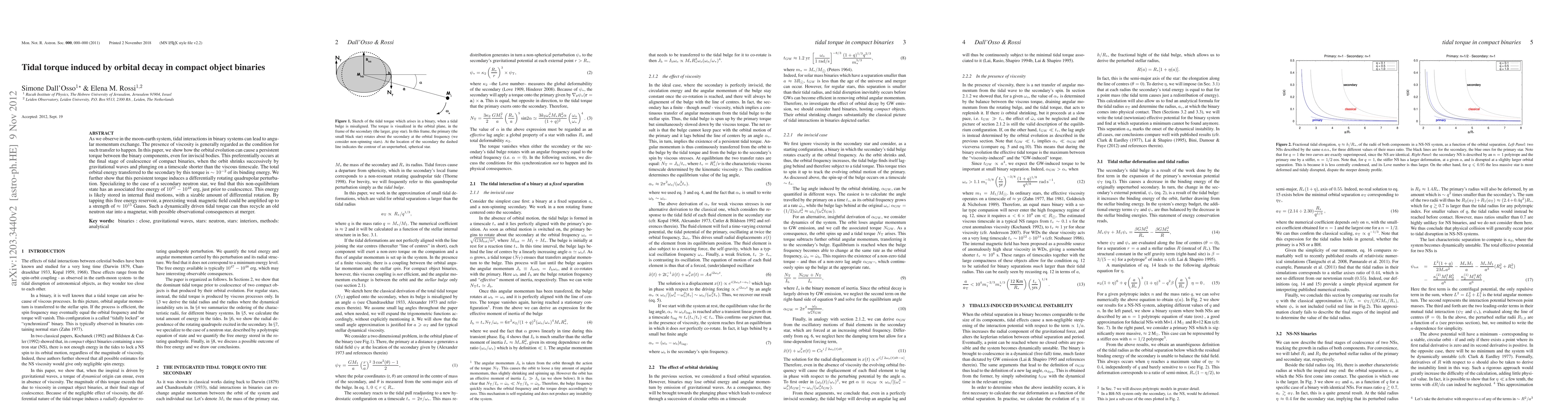 As we observe in the moon-earth system, tidal interactions in binary systems can lead to angular momentum exchange. The presence of viscosity is generally regarded as the condition for such transfer to happen. In this paper, we show how the orbital evolution can cause a persistent torque between the binary components, even for inviscid bodies. This preferentially occurs at the final stage of coalescence of compact binaries, when the orbit shrinks successively by gravitational waves and plunging on a timescale shorter than the viscous timescale. The total orbital energy transferred to the secondary by this torque is ~0.01 of its binding energy. We further show that this persistent torque induces a differentially rotating quadrupole perturbation. Specializing to the case of a secondary neutron star, we find that this non equilibrium state has an associated free energy of 10^47-10^48 erg, just prior to coalescence. This energy is likely stored in internal fluid motions, with a sizable amount of differential rotation. By tapping this free energy reservoir, a preexisting weak magnetic field could be amplified up to a strength of ~10^15 Gauss. Such a dynamically driven tidal torque can thus recycle an old neutron star into a highly magnetized neutron star, with possible observational consequences at merger.