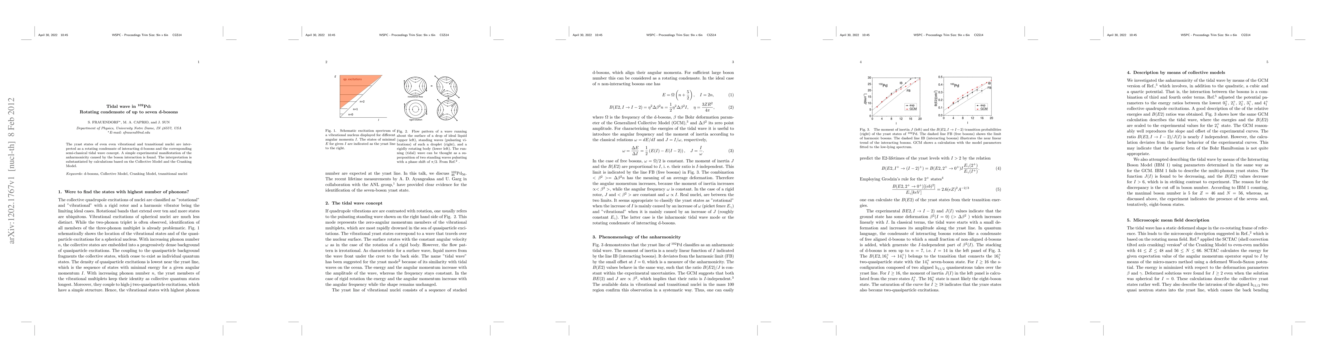 The yrast states of even even vibrational and transitional nuclei are inter- preted as a rotating condensate of interacting d-bosons and the corresponding semi-classical tidal wave concept. A simple experimental manifestation of the anharmonicity caused by the boson interaction is found. The interpretation is substantiated by calculations based on the Collective Model and the Cranking Model.