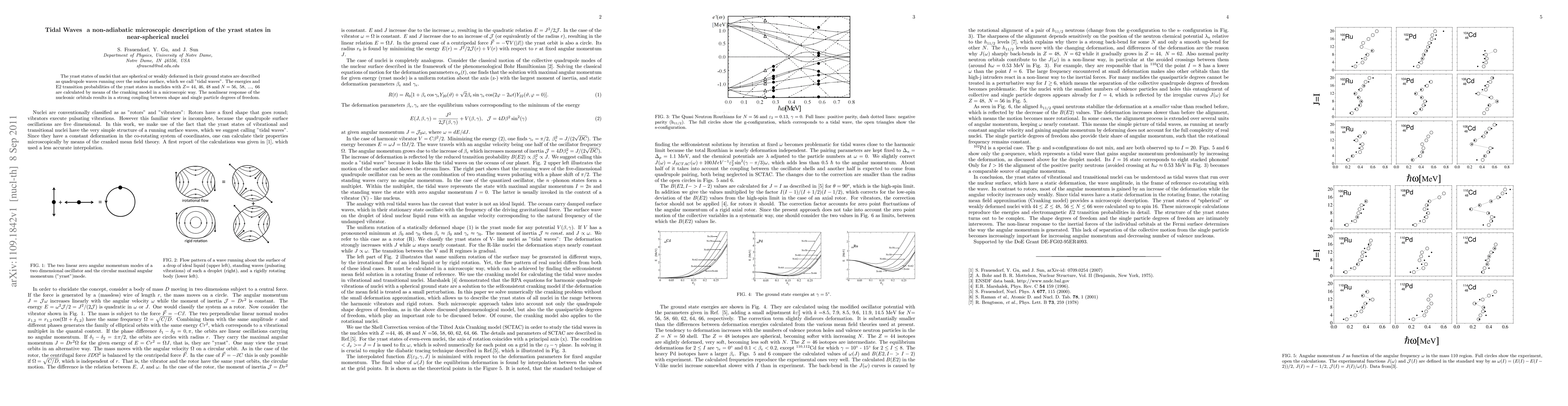 This paper describes the yrast states in near-spherical nuclei as "tidal waves," employing a microscopic cranking model to calculate their energies and E2 transition probabilities. It highlights the nonlinear coupling between shape and single-particle degrees of freedom due to the quadrupole oscillations.