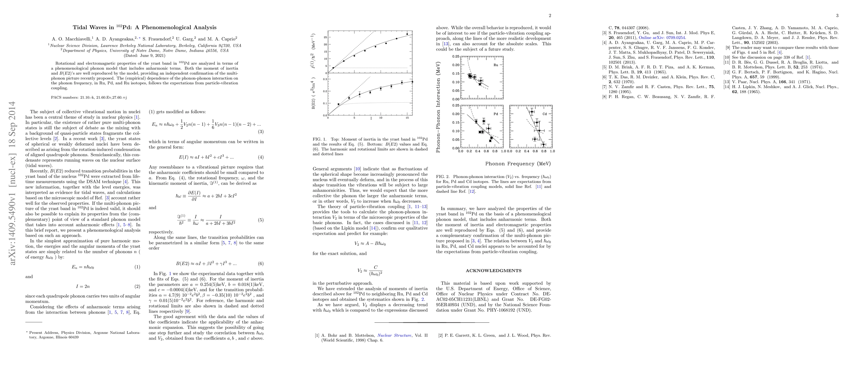 Rotational and electromagnetic properties of the yrast band in $^{102}$Pd are analyzed in terms of a phenomenological phonon model that includes anharmonic terms. Both the moment of inertia and $B(E2)$'s are well reproduced by the model, providing an independent confirmation of the multi-phonon picture recently proposed. The (empirical) dependence of the phonon-phonon interaction on the phonon frequency, in Ru, Pd, and Ru isotopes, follows the expectations from particle-vibration coupling.