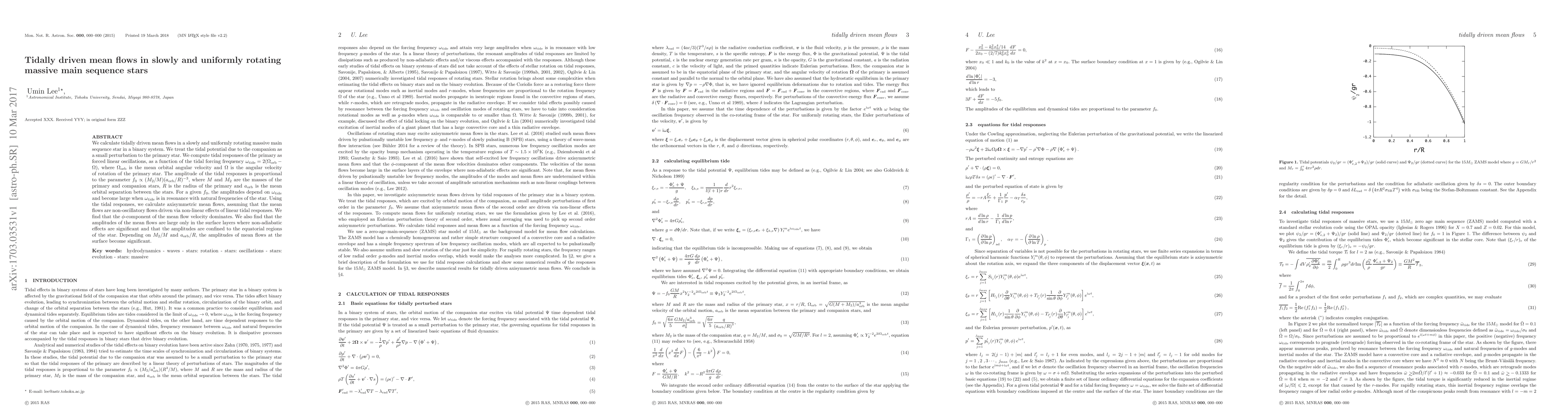This study investigates tidally driven mean flows in slowly rotating massive main sequence stars in binary systems, finding that the $\phi$-component of the mean flow velocity dominates. The amplitudes of these mean flows are significant only in the surface layers and equatorial regions due to non-adiabatic effects, becoming large when tidal forcing frequency resonates with the star's natural frequencies.