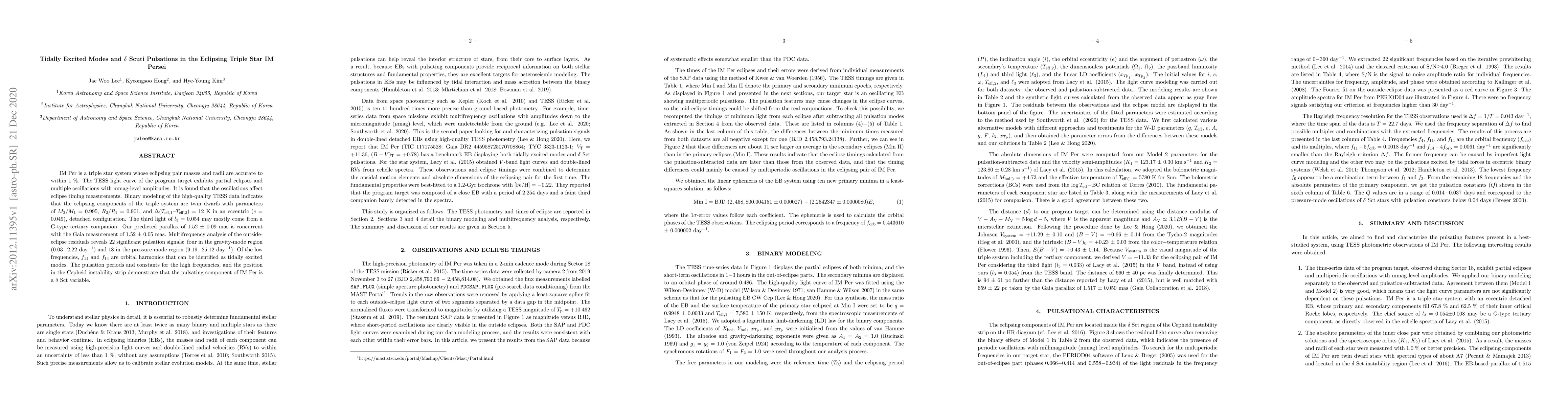 Researchers analyzed the IM Persei triple star system using TESS data and found 22 pulsation signals, including tidally excited modes and a delta Scuti variable, which affects eclipse timing measurements.