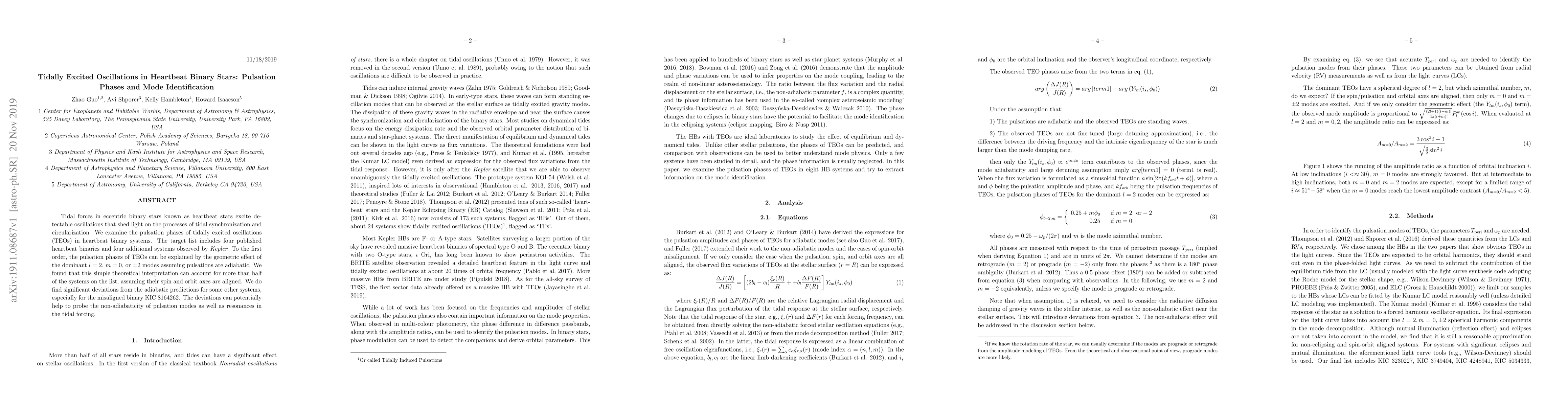 This paper investigates tidally excited oscillations (TEOs) in heartbeat binary stars, revealing that pulsation phases are primarily driven by dominant $l=2$, $m=0$, or $\pm 2$ modes. While adiabatic models explain most systems, significant deviations in misaligned binaries like KIC 8164262 suggest non-adiabatic effects and tidal resonances.