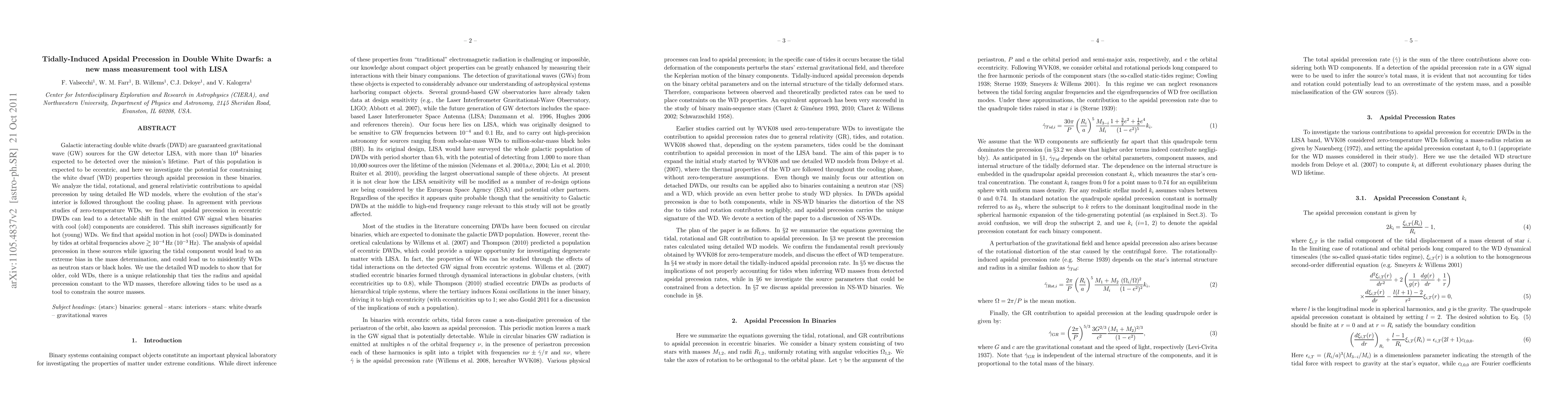 This paper investigates the tidally-induced apsidal precession in eccentric double white dwarf (DWD) binaries, which can be detected by LISA. It finds that apsidal precession can significantly shift the gravitational wave signal, especially in young binaries, and that tidal effects must be considered to accurately determine the white dwarf masses, avoiding misidentification as neutron stars or black holes.