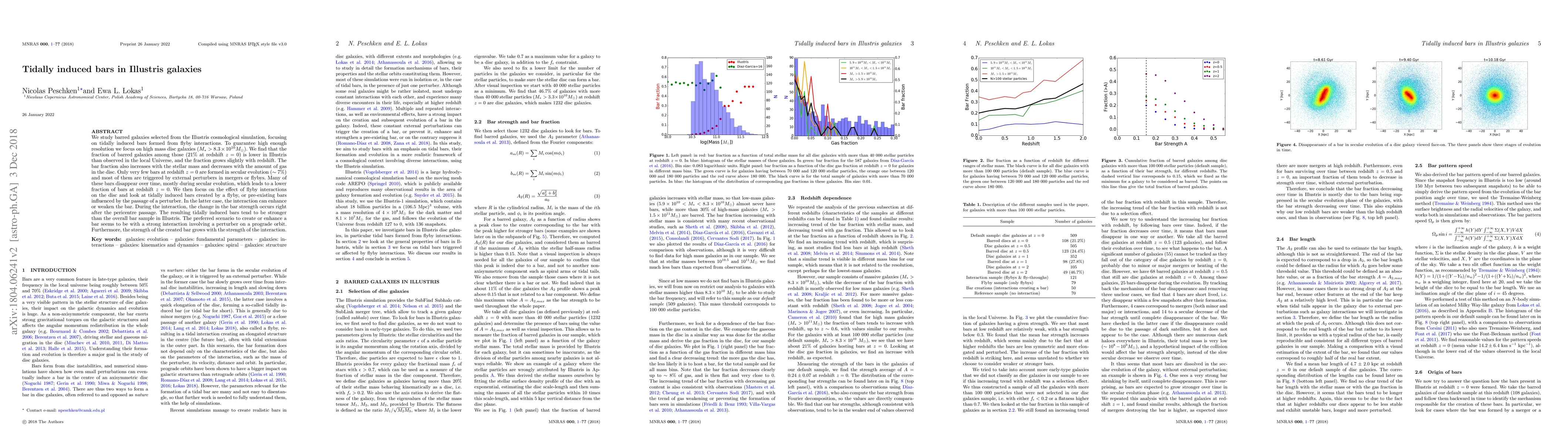 This paper investigates barred galaxies in the Illustris simulation, finding that tidally induced bars from flyby interactions are common but fewer than observed in local galaxies. The study highlights that most bars are formed by external perturbers, and many dissipate over time, contributing to a lower bar fraction at present.