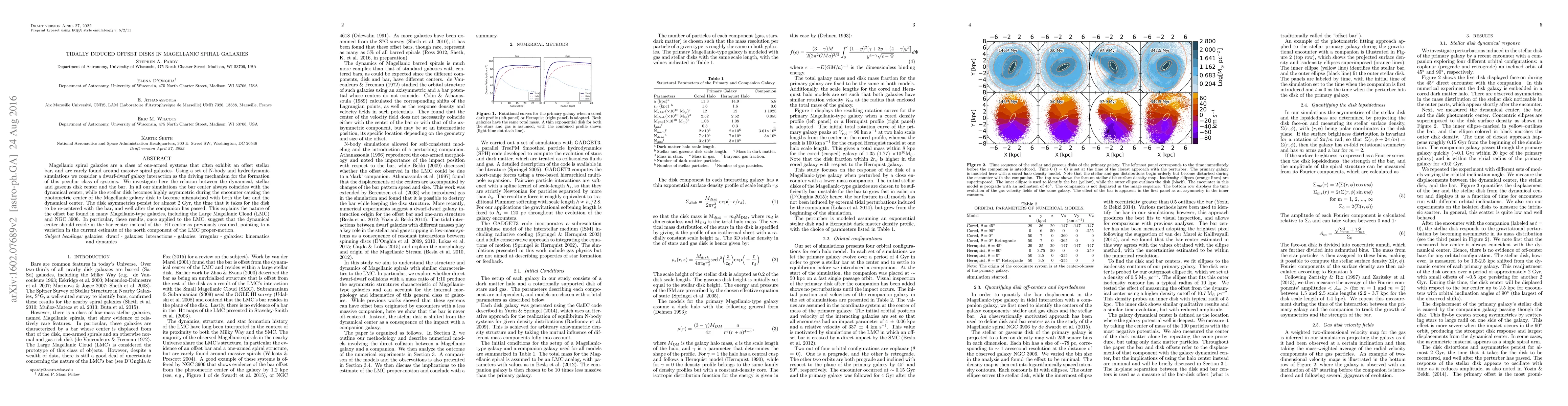 Magellanic spiral galaxies are a class of one-armed systems that often exhibit an offset stellar bar, and are rarely found around massive spiral galaxies. Using a set of N-body and hydrodynamic simulations we consider a dwarf-dwarf galaxy interaction as the driving mechanism for the formation of this peculiar class of systems. We investigate here the relation between the dynamical, stellar and gaseous disk center and the bar. In all our simulations the bar center always coincides with the dynamical center, while the stellar disk becomes highly asymmetric during the encounter causing the photometric center of the Magellanic galaxy disk to become mismatched with both the bar and the dynamical center. The disk asymmetries persist for almost 2 Gyrs, the time that it takes for the disk to be re-centered with the bar, and well after the companion has passed. This explains the nature of the offset bar found in many Magellanic-type galaxies, including the Large Magellanic Cloud (LMC) and NGC 3906. In particular, these results, once applied to the LMC, suggest that the dynamical center should reside in the bar center instead of the HI center as previously assumed, pointing to a variation in the current estimate of the north component of the LMC proper motion.
