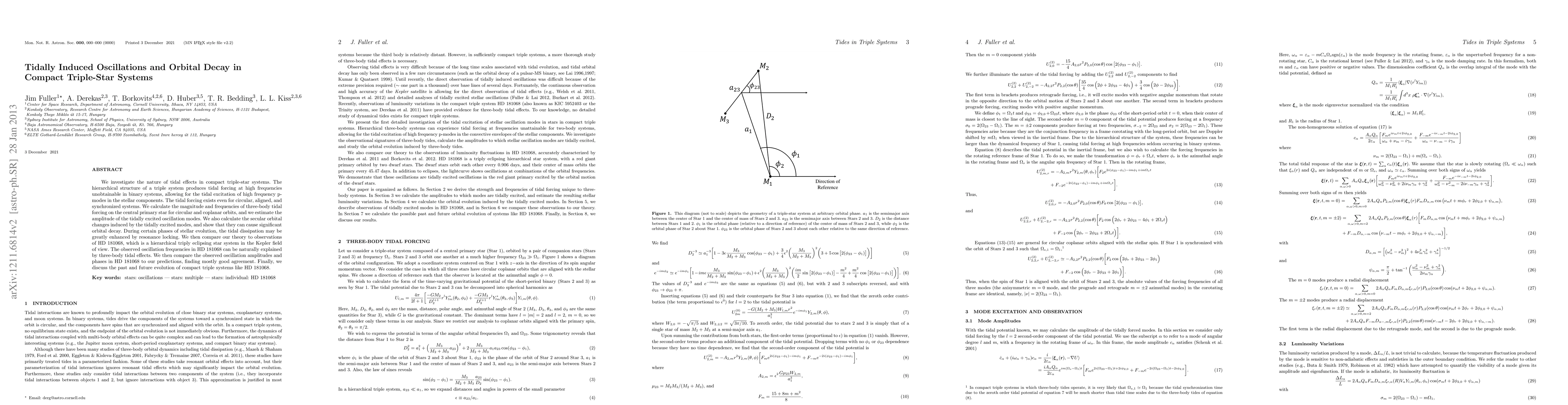 We investigate the nature of tidal effects in compact triple-star systems. The hierarchical structure of a triple system produces tidal forcing at high frequencies unobtainable in binary systems, allowing for the tidal excitation of high frequency p-modes in the stellar components. The tidal forcing exists even for circular, aligned, and synchronized systems. We calculate the magnitude and frequencies of three-body tidal forcing on the central primary star for circular and coplanar orbits, and we estimate the amplitude of the tidally excited oscillation modes. We also calculate the secular orbital changes induced by the tidally excited modes, and show that they can cause significant orbital decay. During certain phases of stellar evolution, the tidal dissipation may be greatly enhanced by resonance locking. We then compare our theory to observations of HD 181068, which is a hierarchical triply eclipsing star system in the Kepler field of view. The observed oscillation frequencies in HD 181068 can be naturally explained by three-body tidal effects. We then compare the observed oscillation amplitudes and phases in HD 181068 to our predictions, finding mostly good agreement. Finally, we discuss the past and future evolution of compact triple systems like HD 181068.