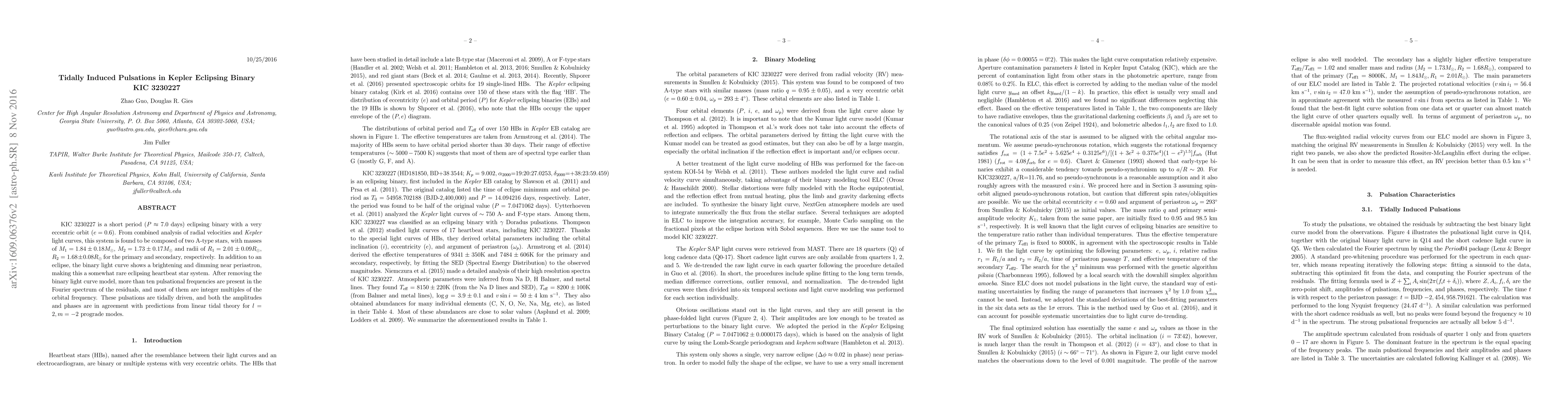 KIC 3230227 is an eclipsing binary with a short period and eccentric orbit, composed of two A-type stars showing tidally induced pulsations. The system exhibits pulsational frequencies in its light curve, primarily driven by tidal forces, consistent with theoretical predictions for prograde modes.