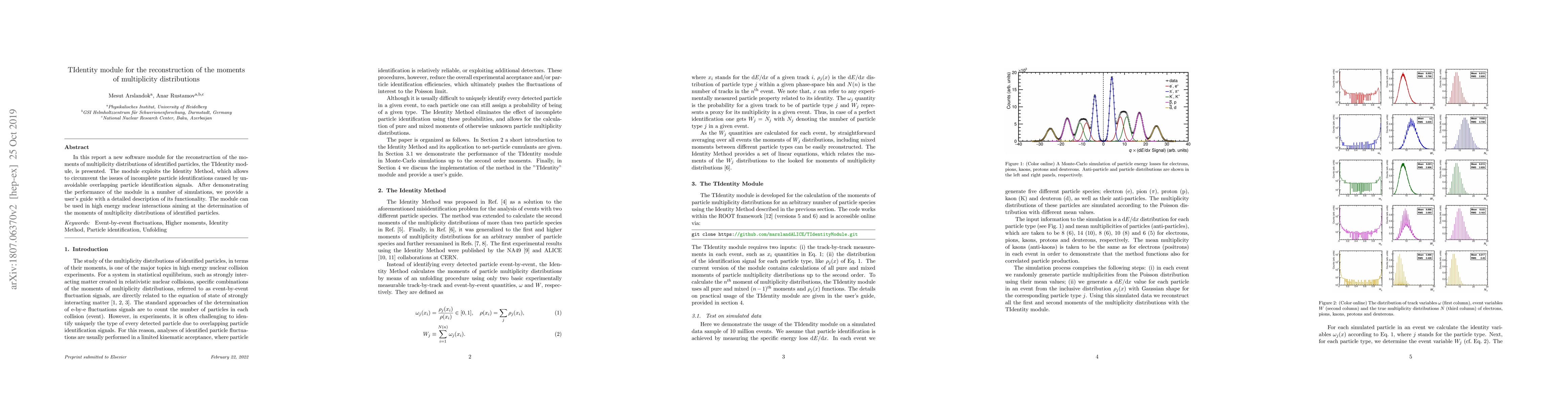 This paper introduces the TIdentity module, a new software tool for reconstructing the moments of multiplicity distributions of identified particles, utilizing the Identity Method to address incomplete particle identifications. The module is demonstrated through simulations and accompanied by a comprehensive user's guide for high energy nuclear interactions.