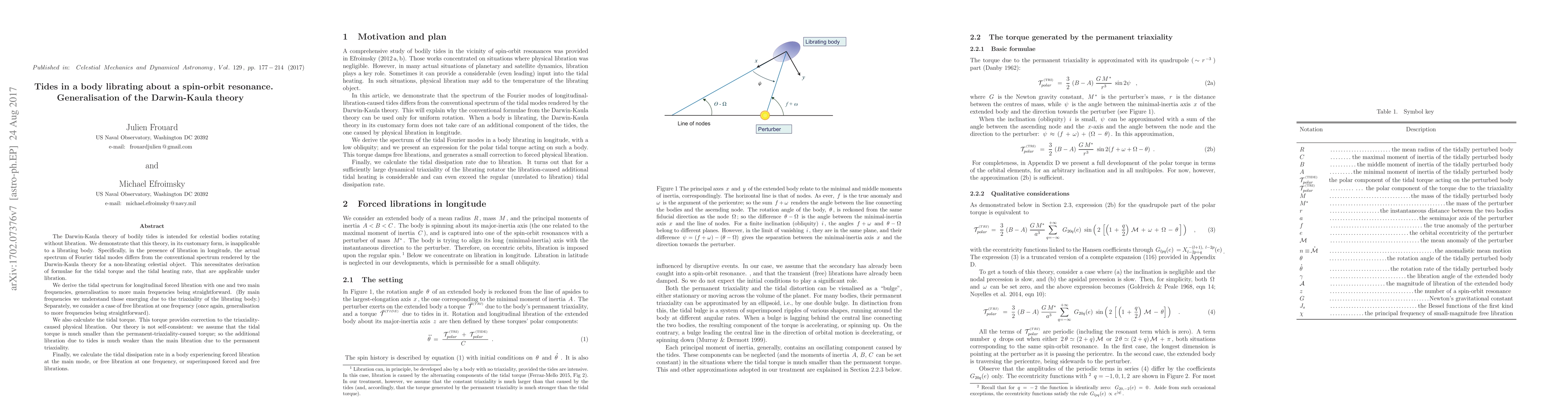 The Darwin-Kaula theory of bodily tides is intended for celestial bodies rotating without libration. We demonstrate that this theory, in its customary form, is inapplicable to a librating body. Specifically, in the presence of libration in longitude, the actual spectrum of Fourier tidal modes differs from the conventional spectrum rendered by the Darwin-Kaula theory for a non-librating celestial object. This necessitates derivation of formulae for the tidal torque and the tidal heating rate, that are applicable under libration. We derive the tidal spectrum for longitudinal forced libration with one and two main frequencies, generalisation to more main frequencies being straightforward. (By main frequencies we understand those emerging due to the triaxiality of the librating body.) Separately, we consider a case of free libration at one frequency (once again, generalisation to more frequencies being straightforward). We also calculate the tidal torque. This torque provides correction to the triaxiality-caused physical libration. Our theory is not self-consistent: we assume that the tidal torque is much smaller than the permanent-triaxiality-caused torque; so the additional libration due to tides is much weaker than the main libration due to the permanent triaxiality. Finally, we calculate the tidal dissipation rate in a body experiencing forced libration at the main mode, or free libration at one frequency, or superimposed forced and free librations.
