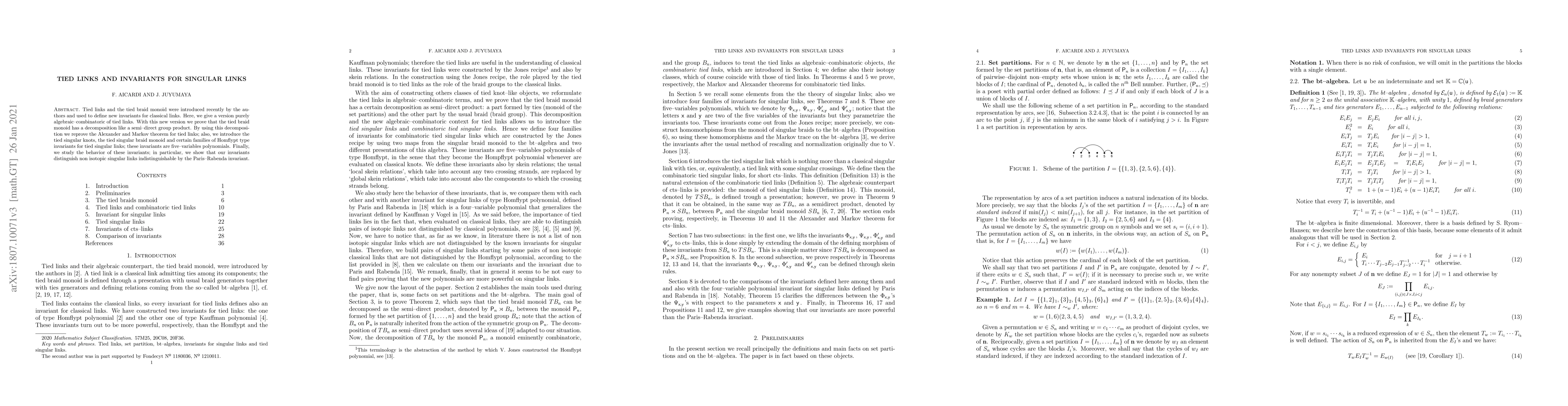 The algebraic-combinatoric formulation of tied links and the proof of the tied braid monoid's semi-direct group product decomposition represent a significant technical contribution, providing a new framework for studying singular links.